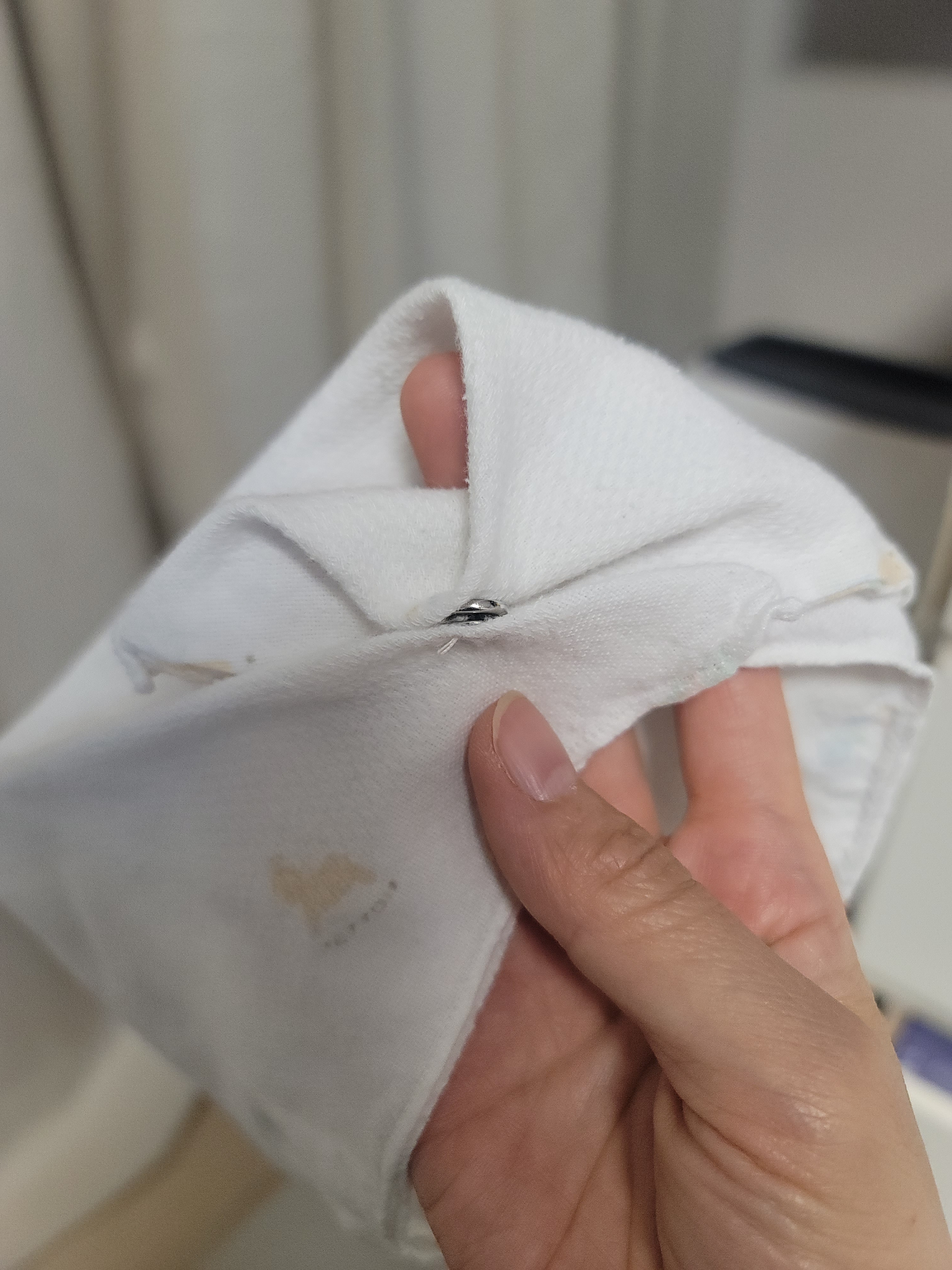 기존에 쓰던 손수건 깨끗하게 세탁해서 똑딱이붙여서 턱받이 여러개 만들었어요. 시간은 조금 걸렸지만 뿌듯해요!