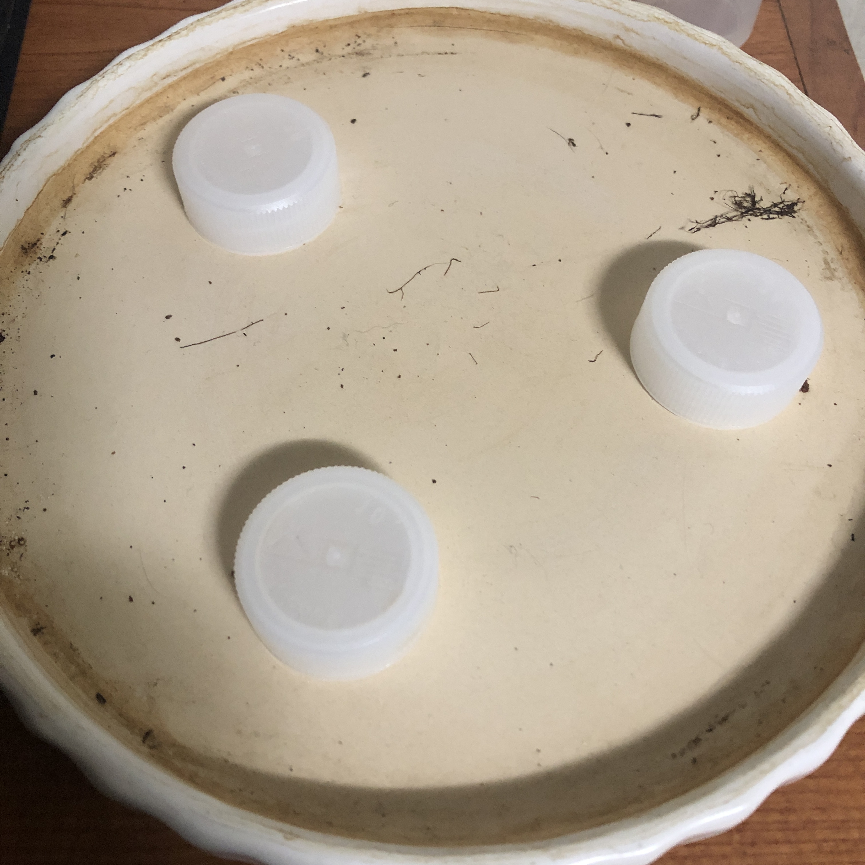 화분 물빠짐이 원활하게 하기 병뚜껑 세개 활용