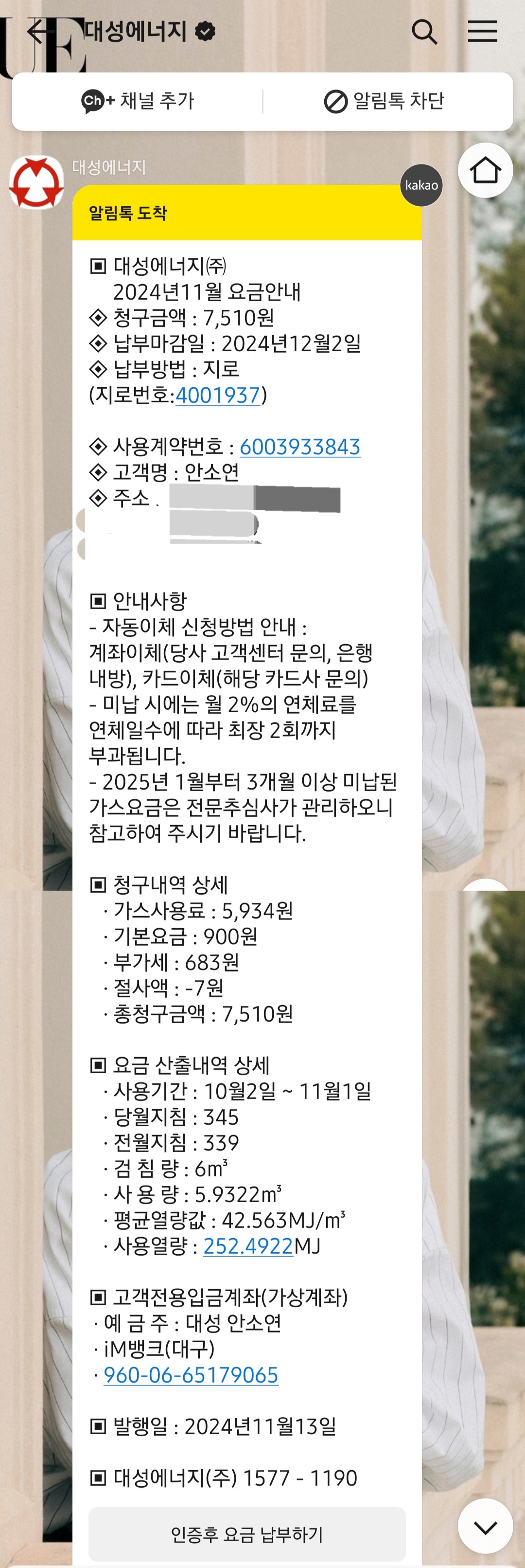 도시가스 모바일 요금 계산