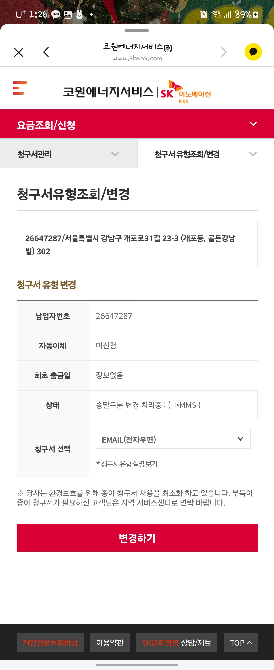 도시가스 청구서유형 변경완료