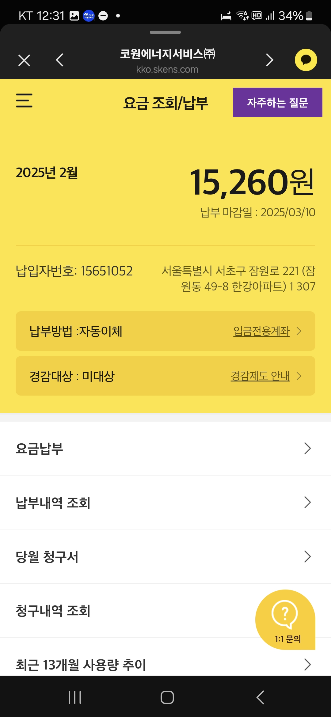 아파트 관리비와 도시 가스비 전자고지서로 납부합니다.
