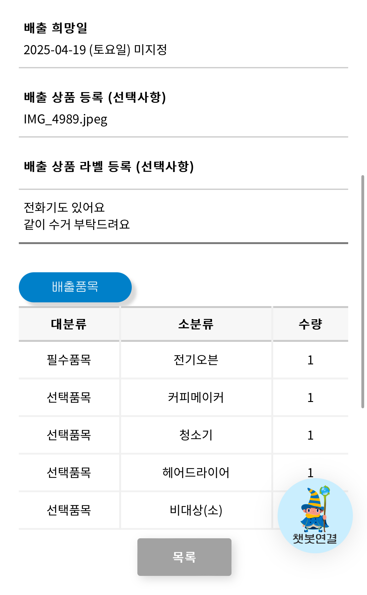 이삿짐 정리하면서 배출된 물걸레청소기, 전기오븐, 커피메이커등 소형가전 배출 수거 완료!