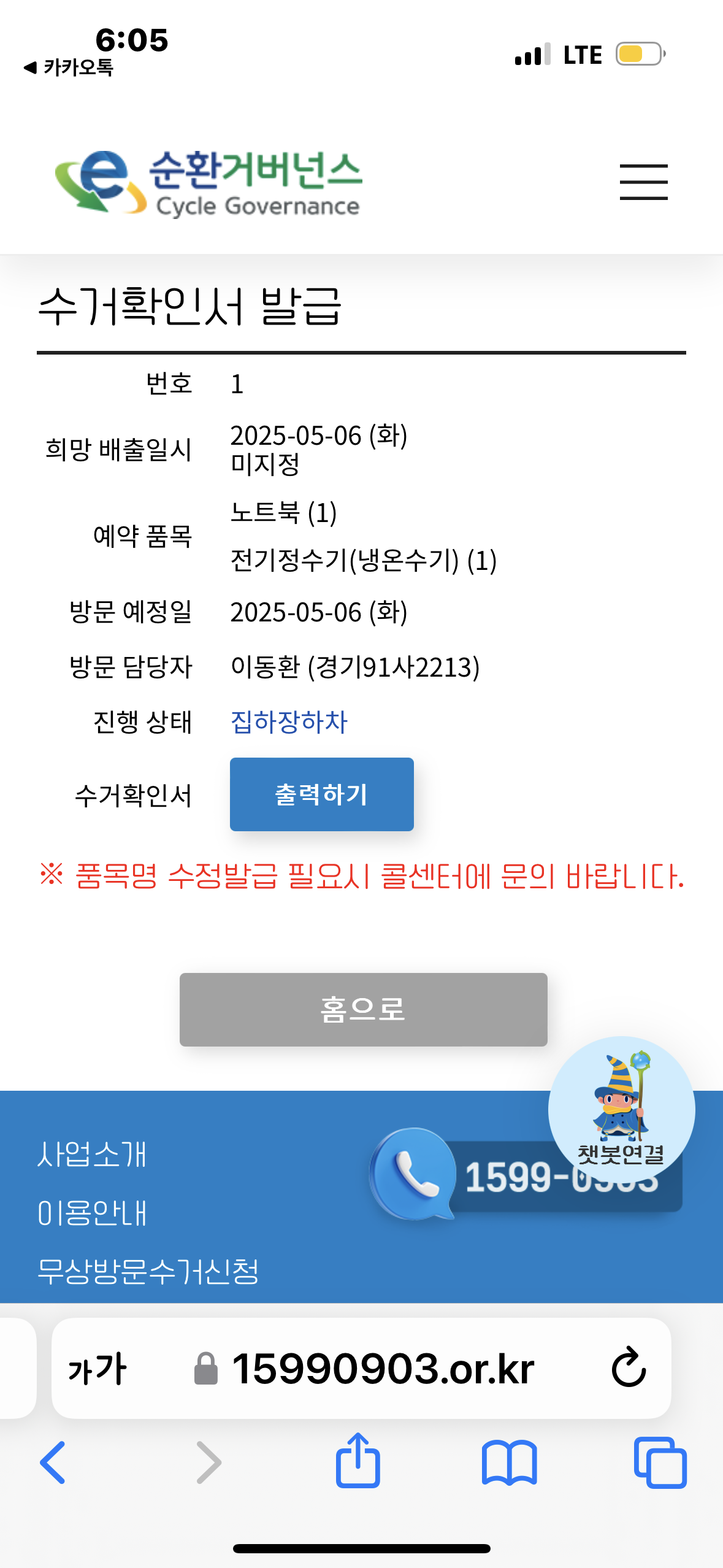 정수기 노트북 폐가전수거완료!