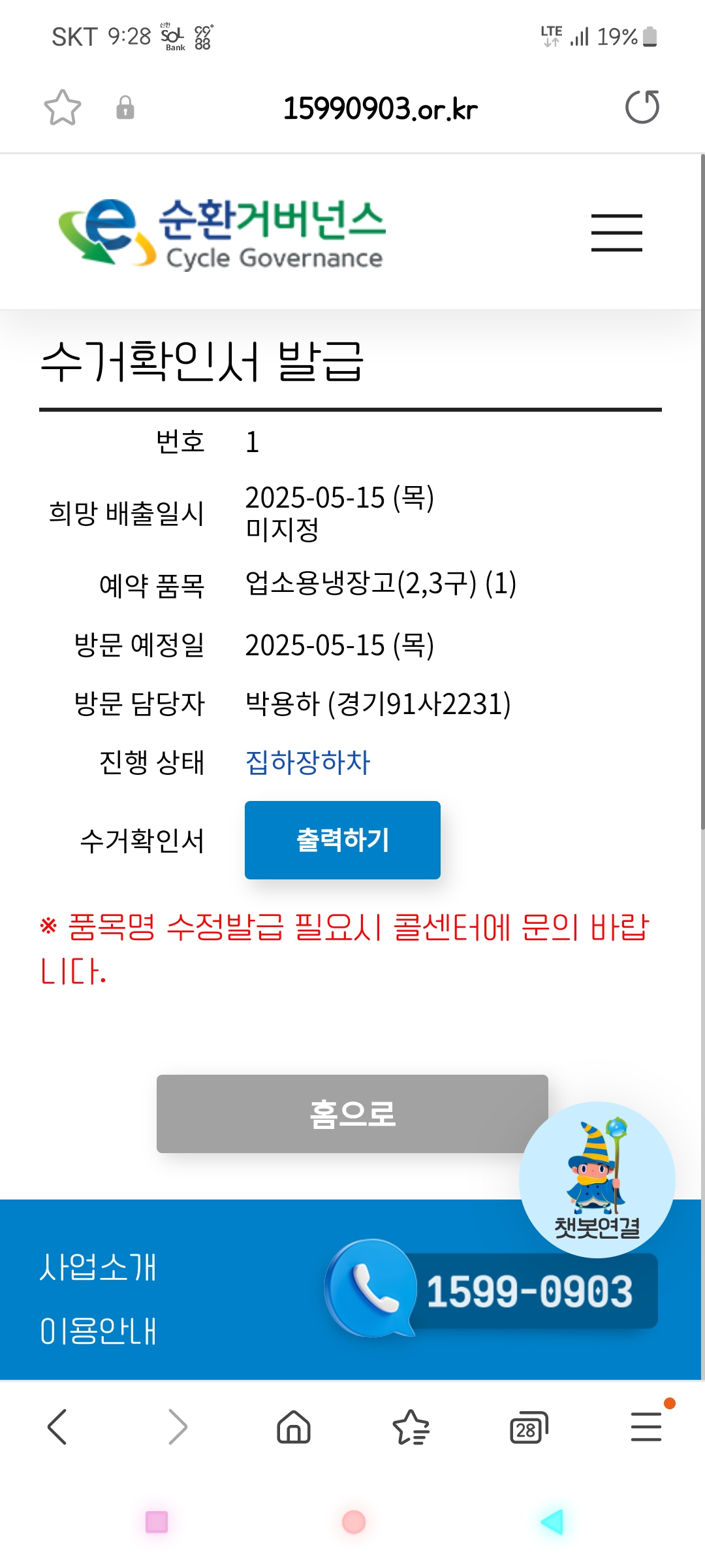 폐가전 수거 요청