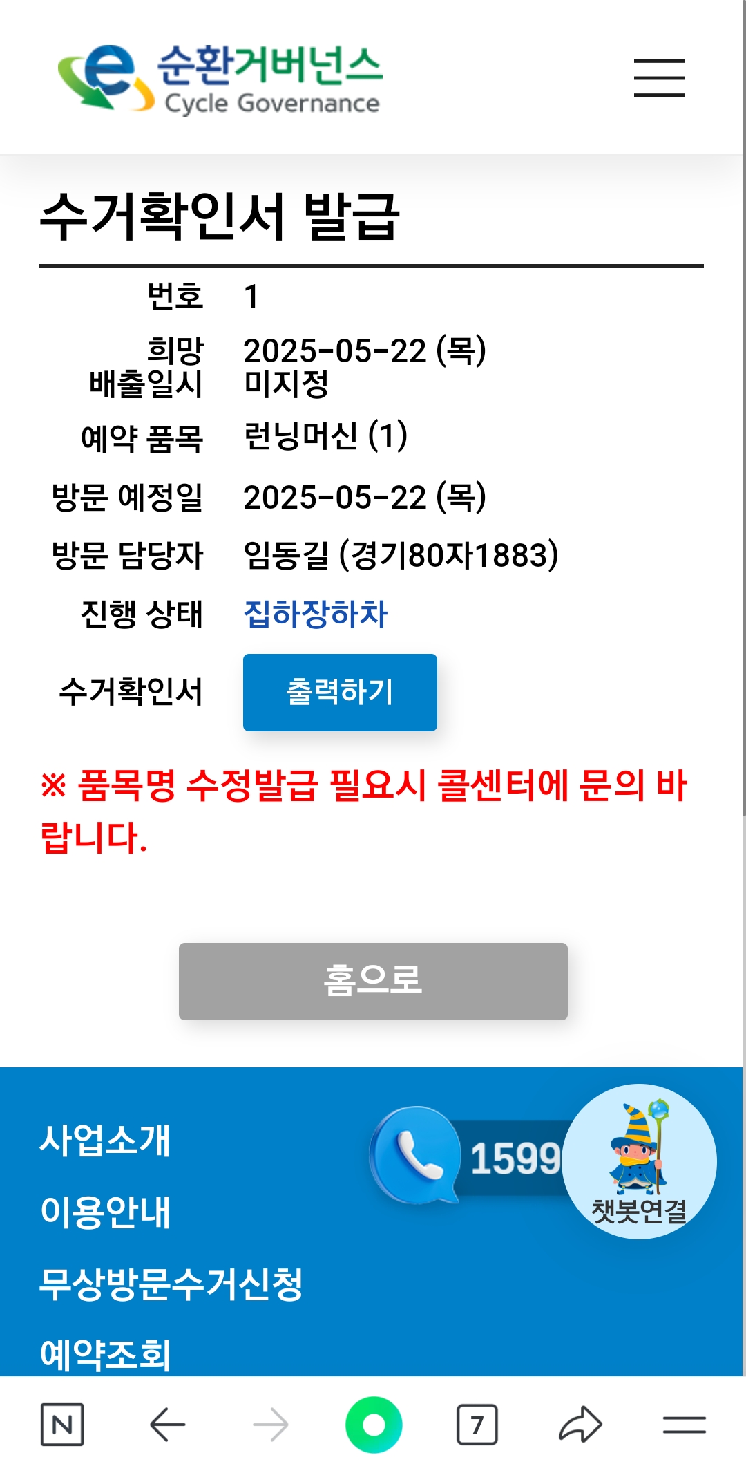 런닝머신 수거