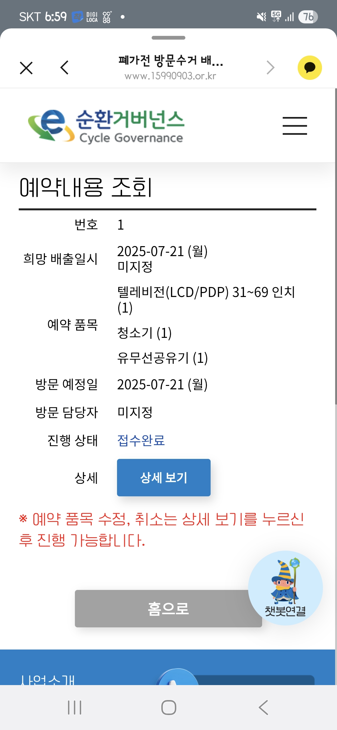폐가전제품 수거예약 신청했어요