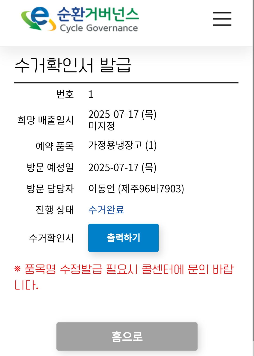 가정용 냉장고배출