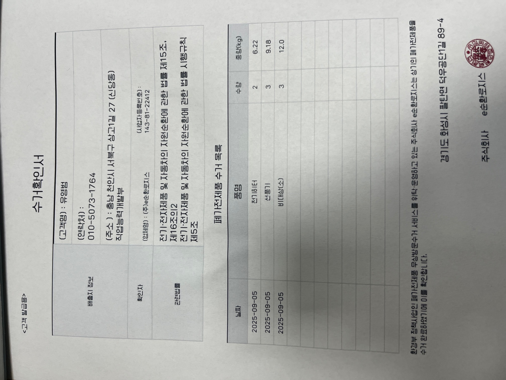 재활용 반납을 했습니다.