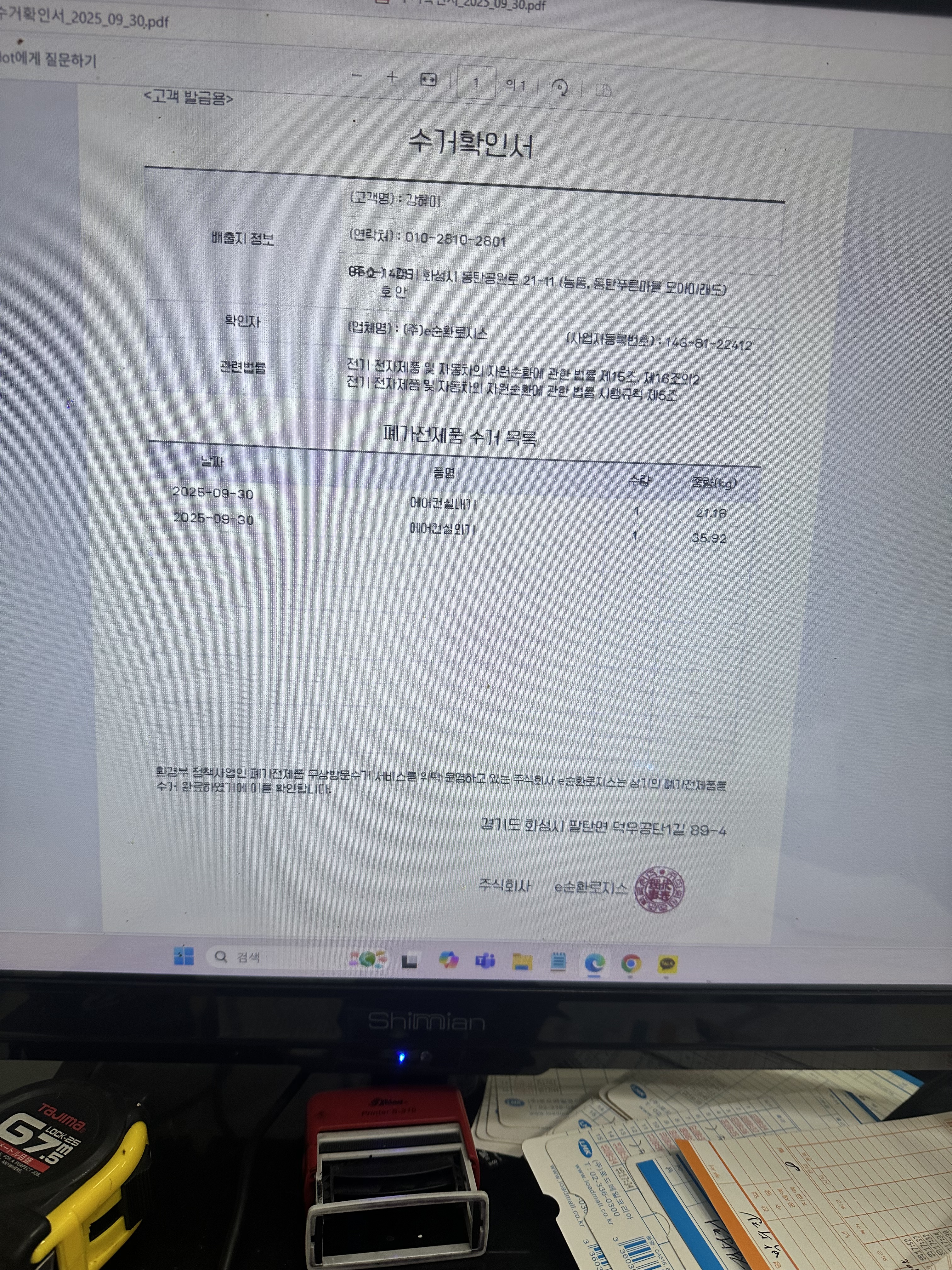 에어콘 교체하면서 무상수거 진행했어요.