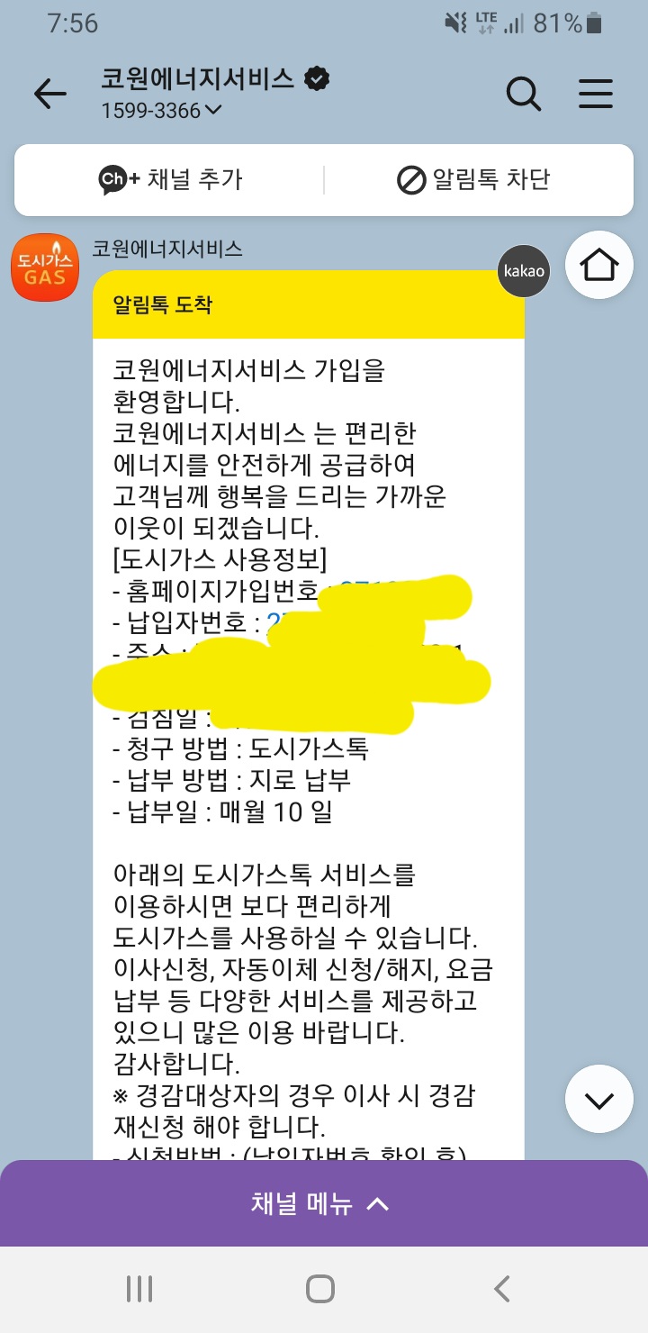 모바일 톡 으로 가스비 청구서 받아요-
