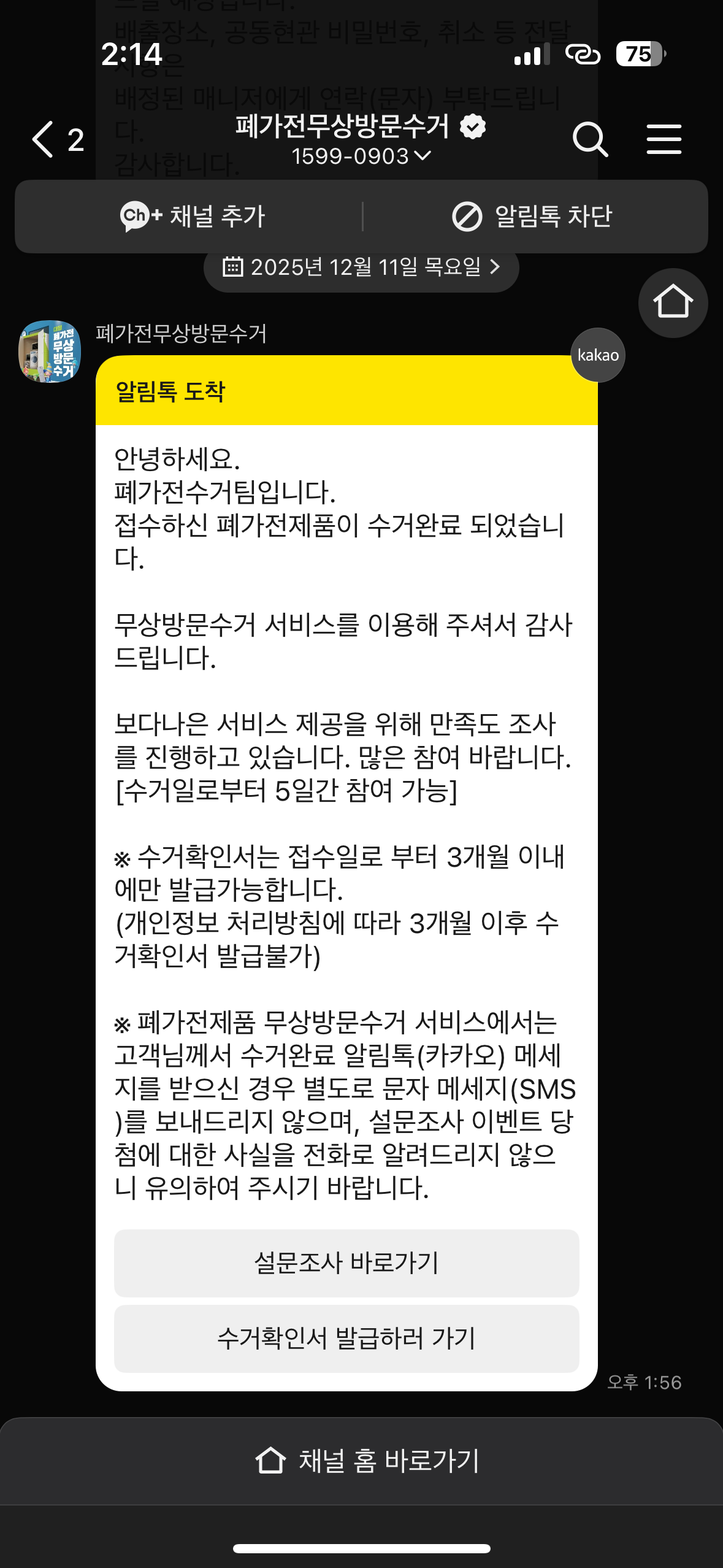 폐가전 배출 완료