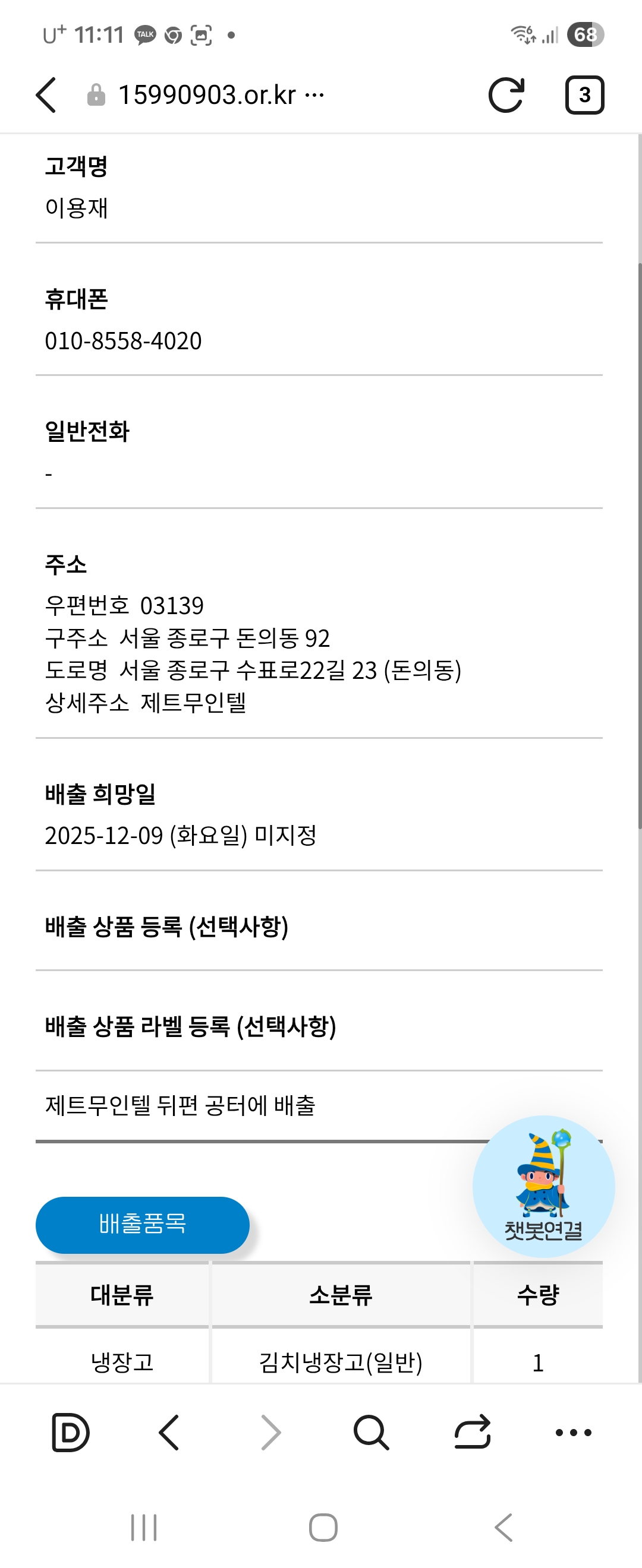 품목/수량 선택 (필수)