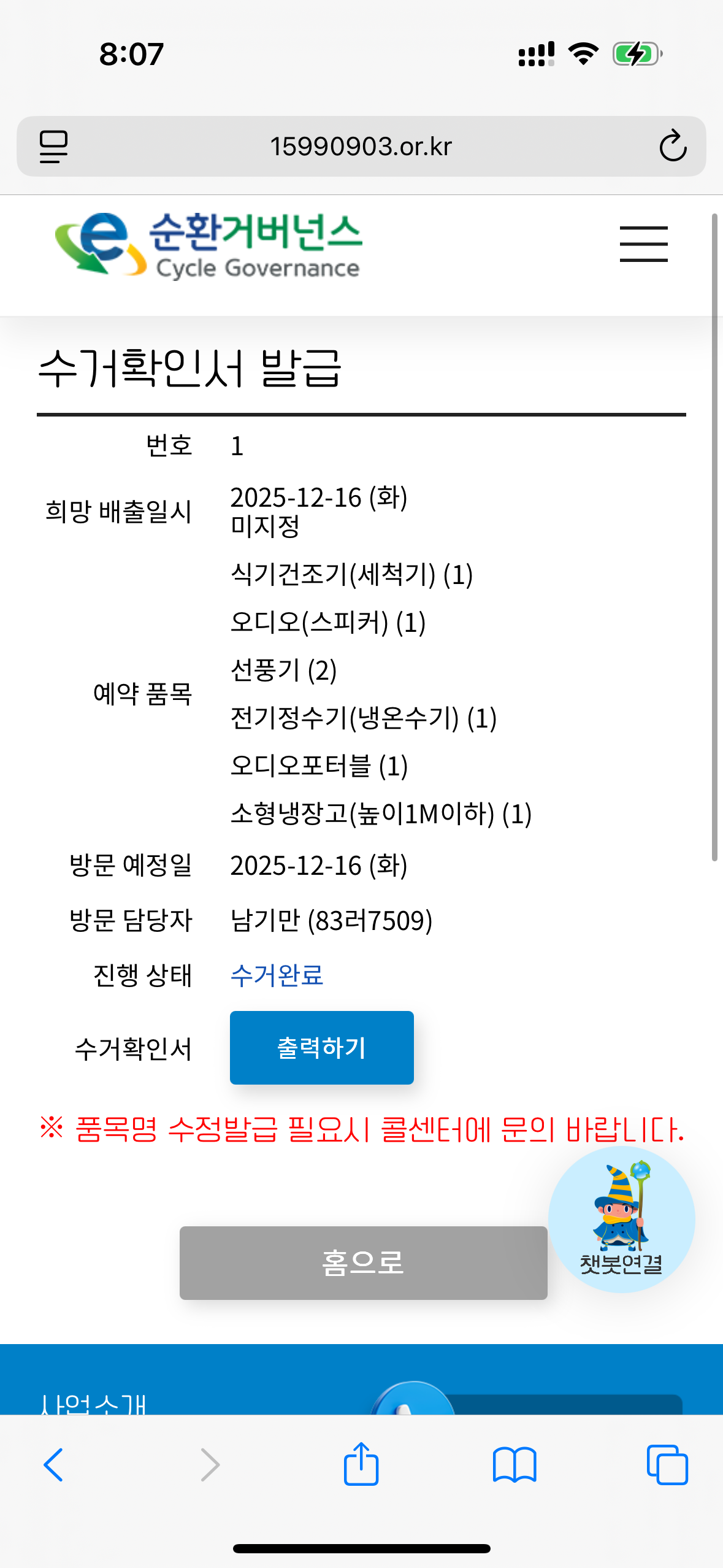 폐가전제품 수거신청 했어요!