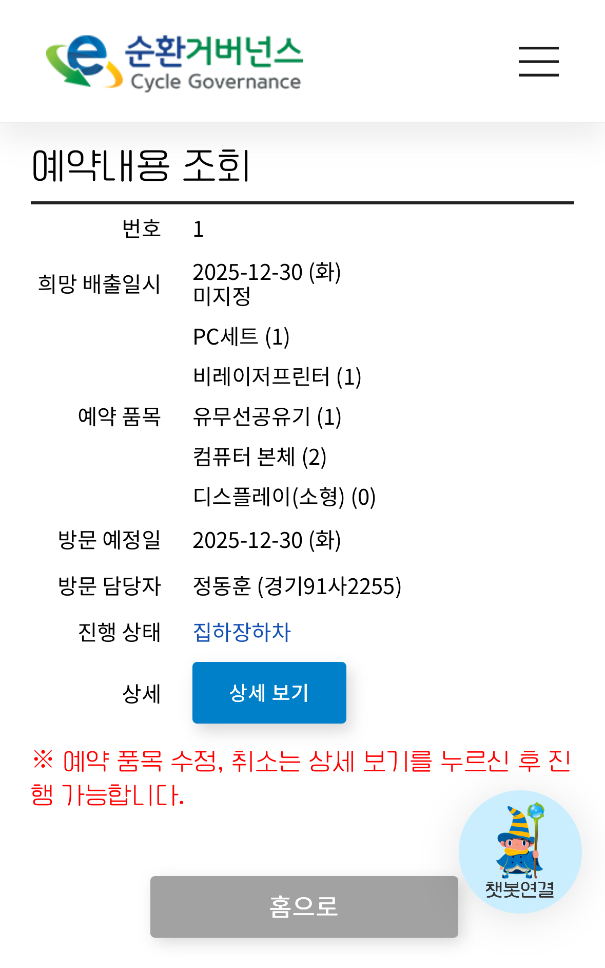 프린트, 본체, 노트북, 공유기 무상수거요청 했어요.