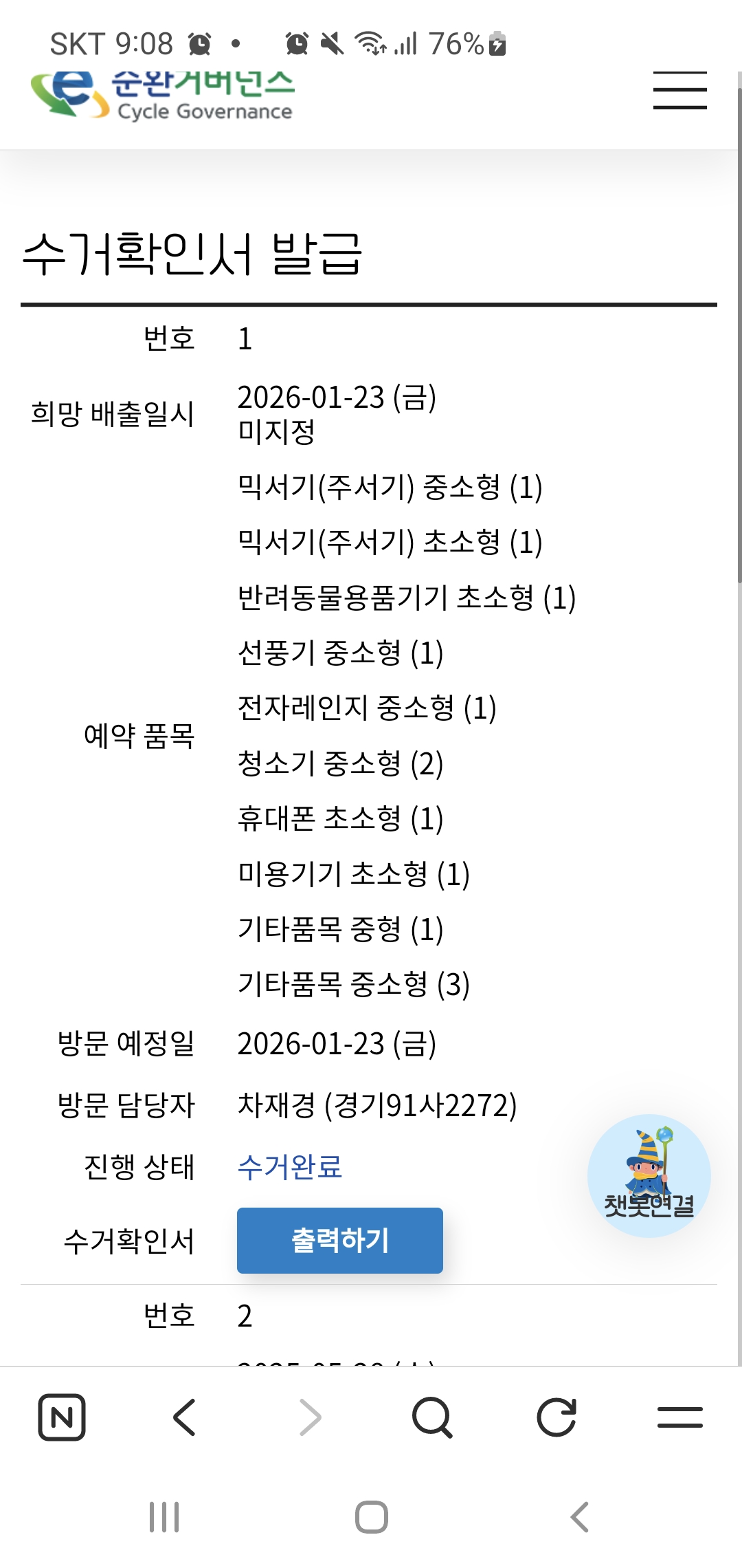 이사가면서 폐가전 무상수거했어요