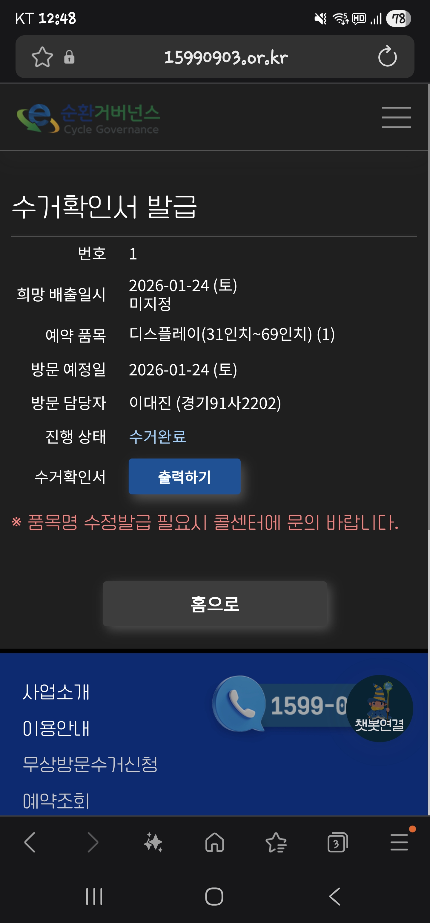 폐가전 모니터 수거완료
