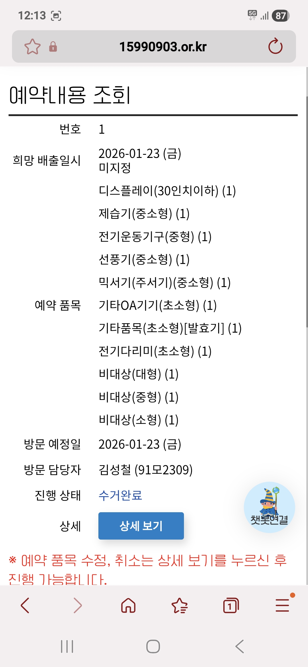 폐가전 무상수거 완료