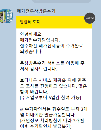 고장난 티비를 수거요청하고 수거완료 문자를 받았습니다