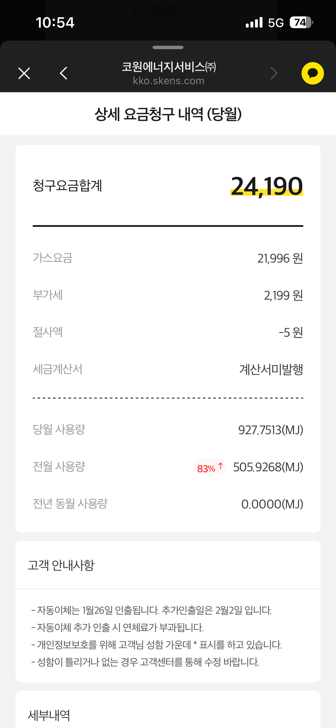 가스 모바일 청구서