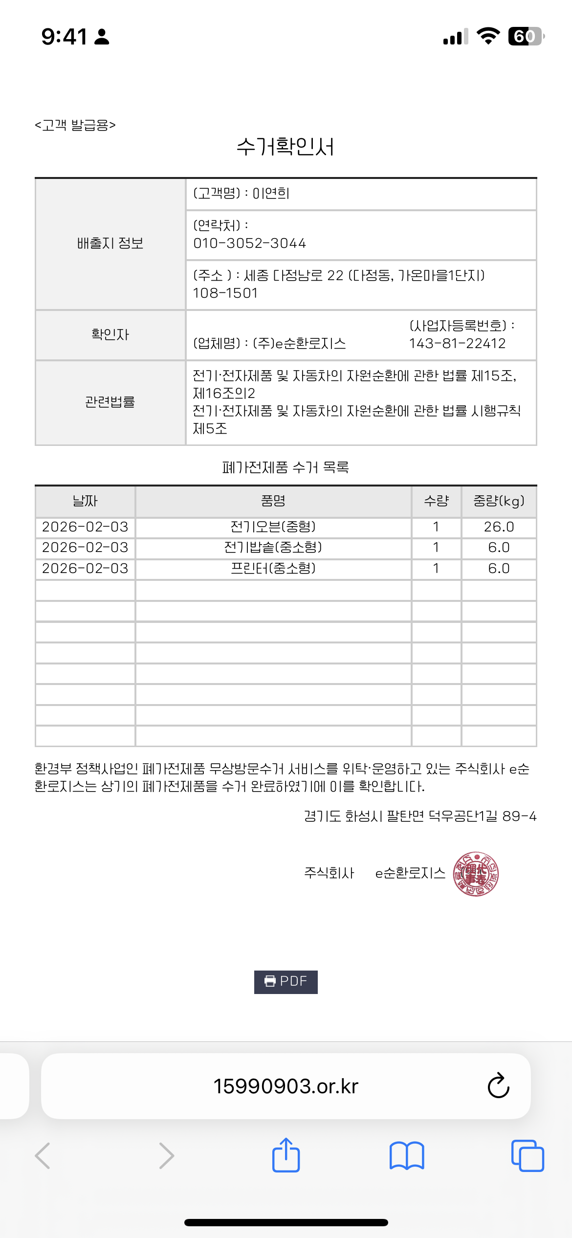 처음으로 폐가전 수거 신청해 봤는데 너무나 편리하고 좋아요! 문앞에 내어 놓으면 정해진 시간에 샤샥 수거해가주시는 방문 서비스라 잘 이용했습니다. 주변 사람들한테도 많이 알려야 갰어요!