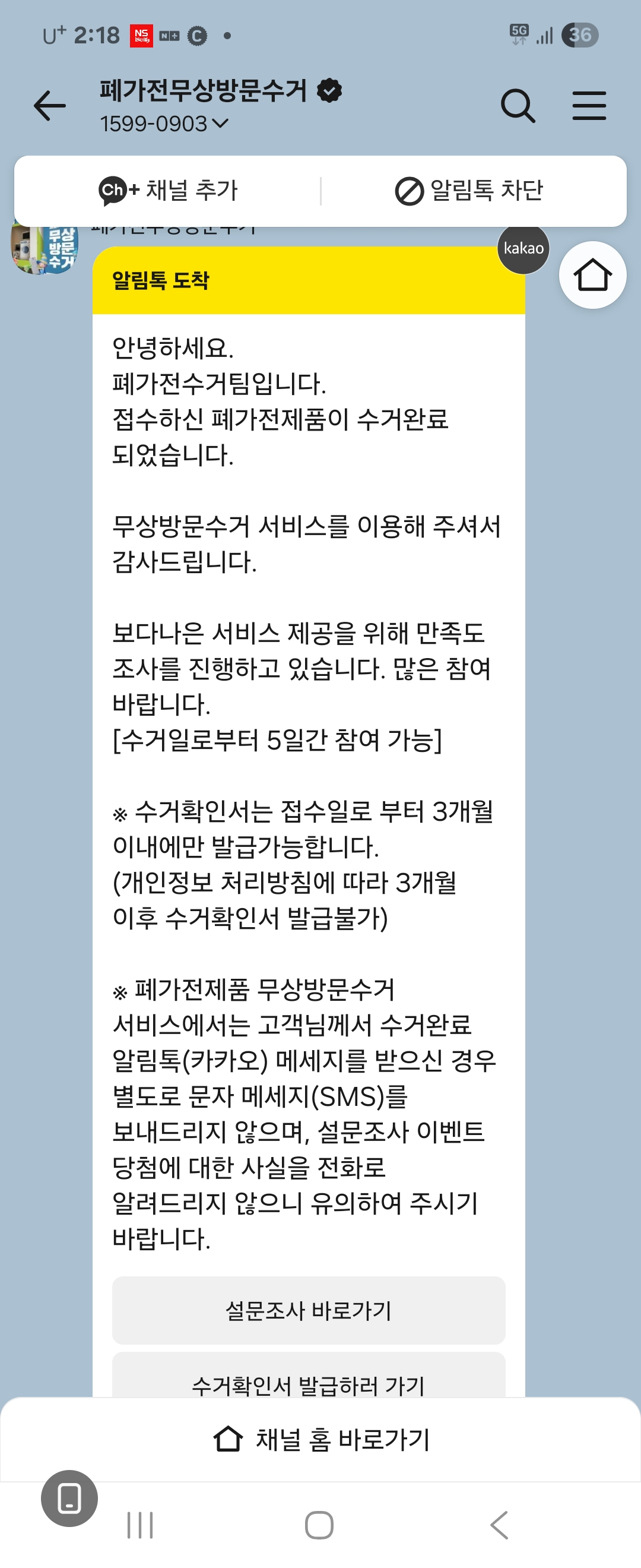 폐가전 수거신청후 수거완료