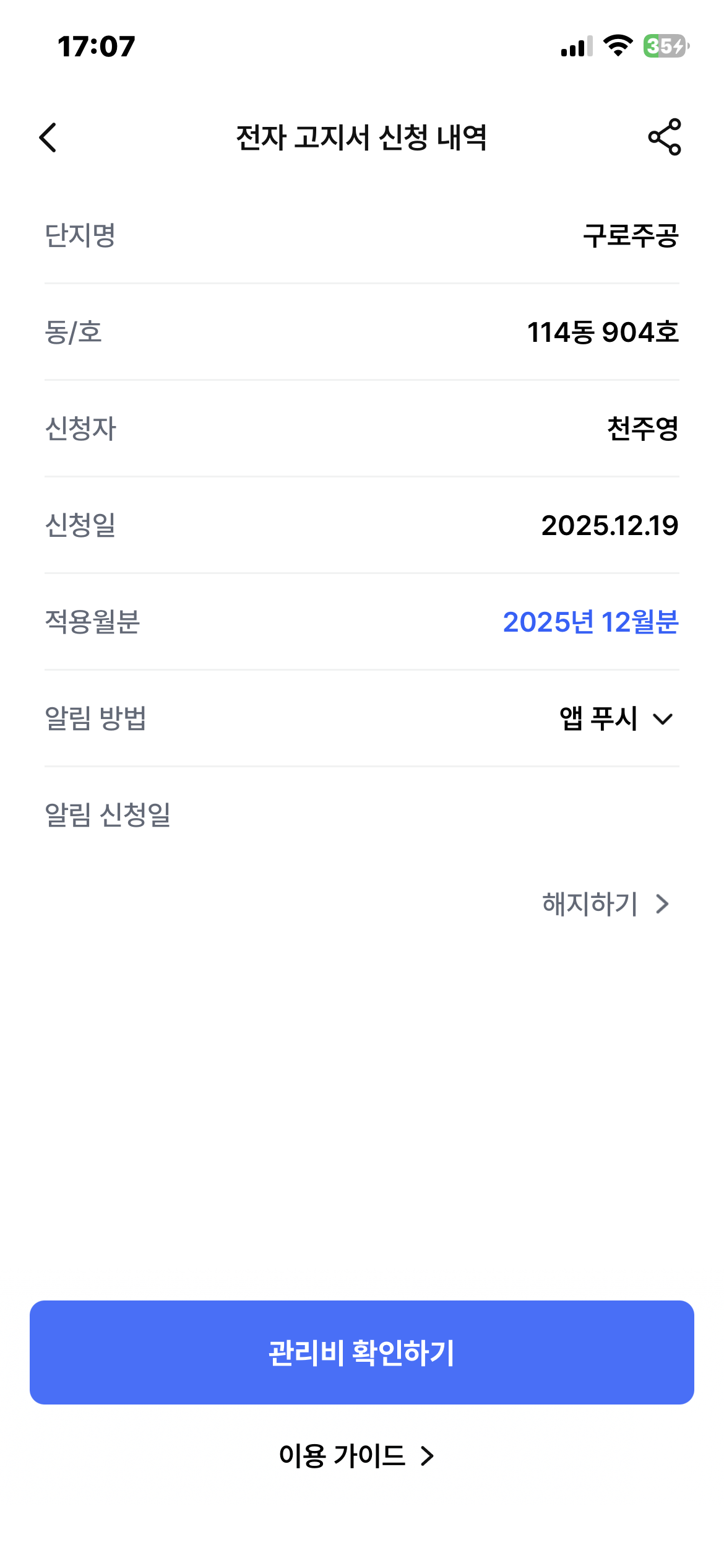 관리비 모바일 청구서 전환