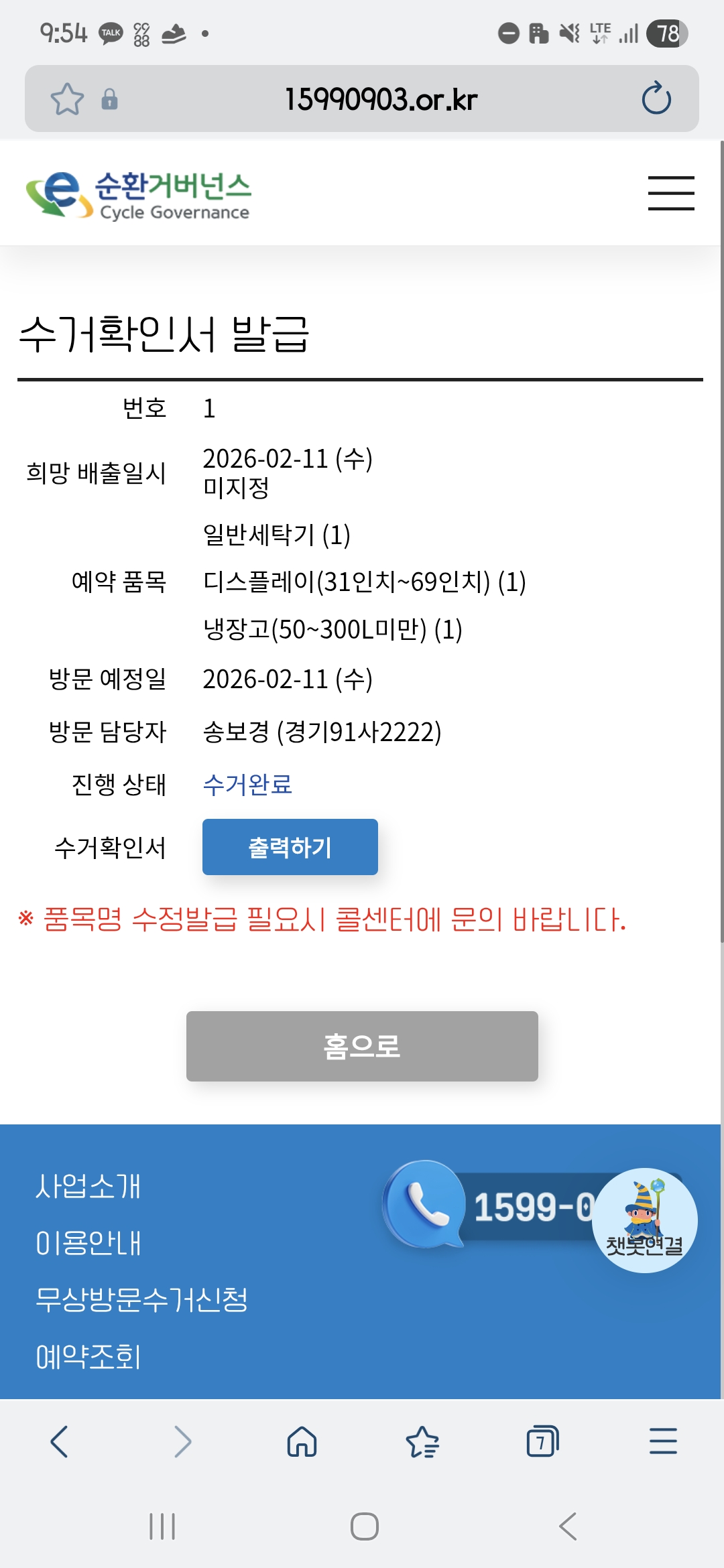 폐가전 처리완료