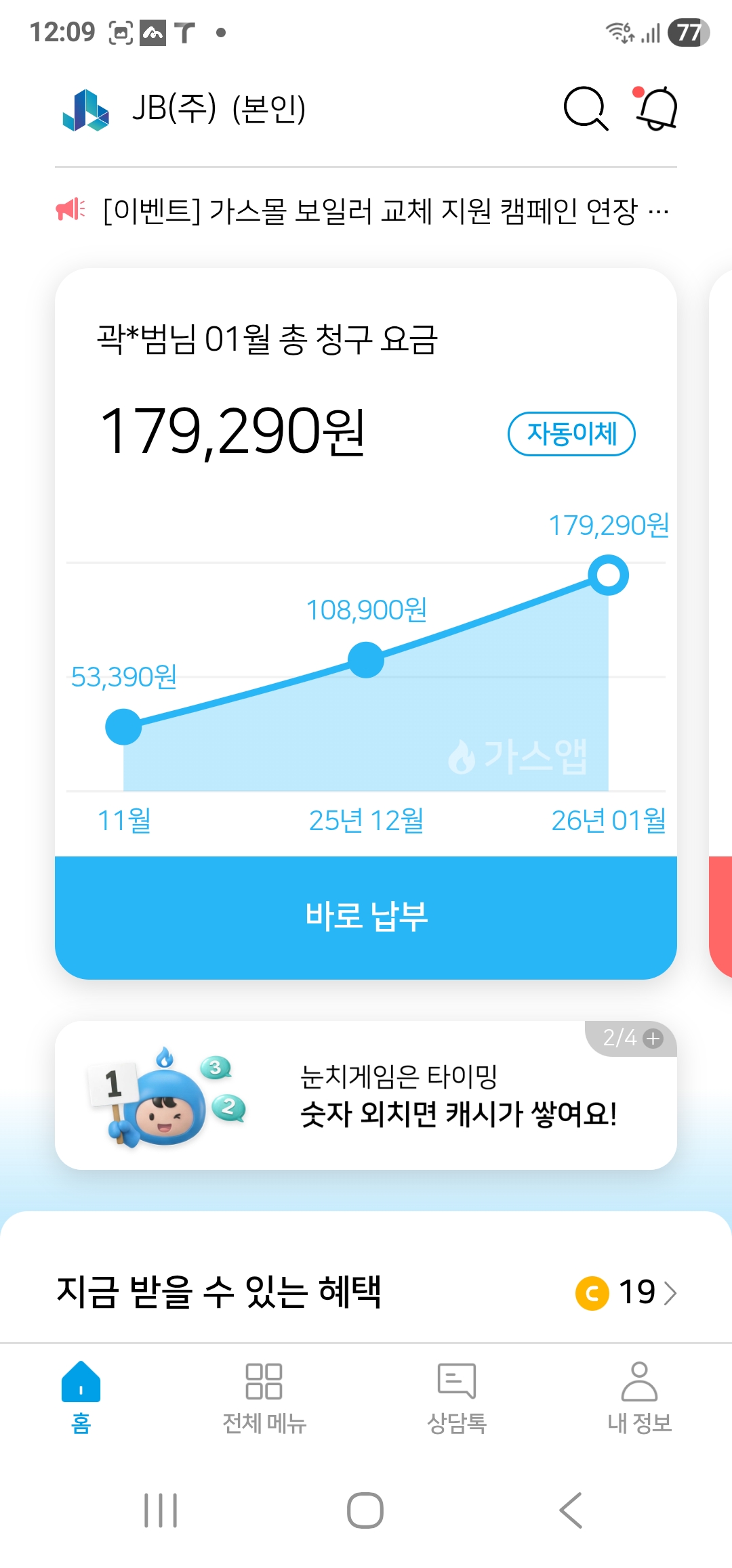 가스요금 모바일 청구서