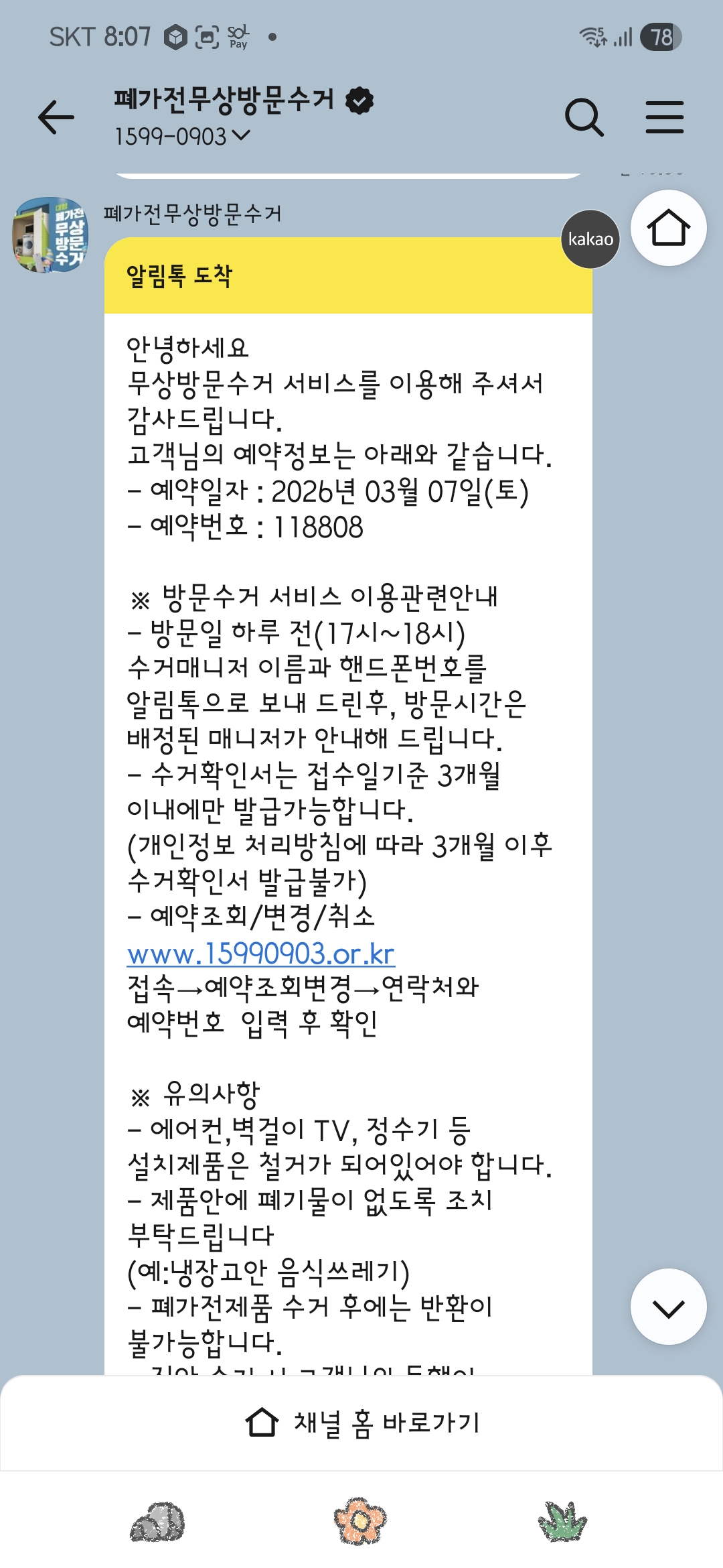 기사님이 직접 가져가셔서 사진대신 카톡인증해용