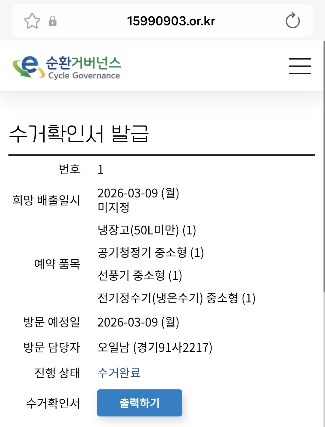 폐가전제품 배출완료