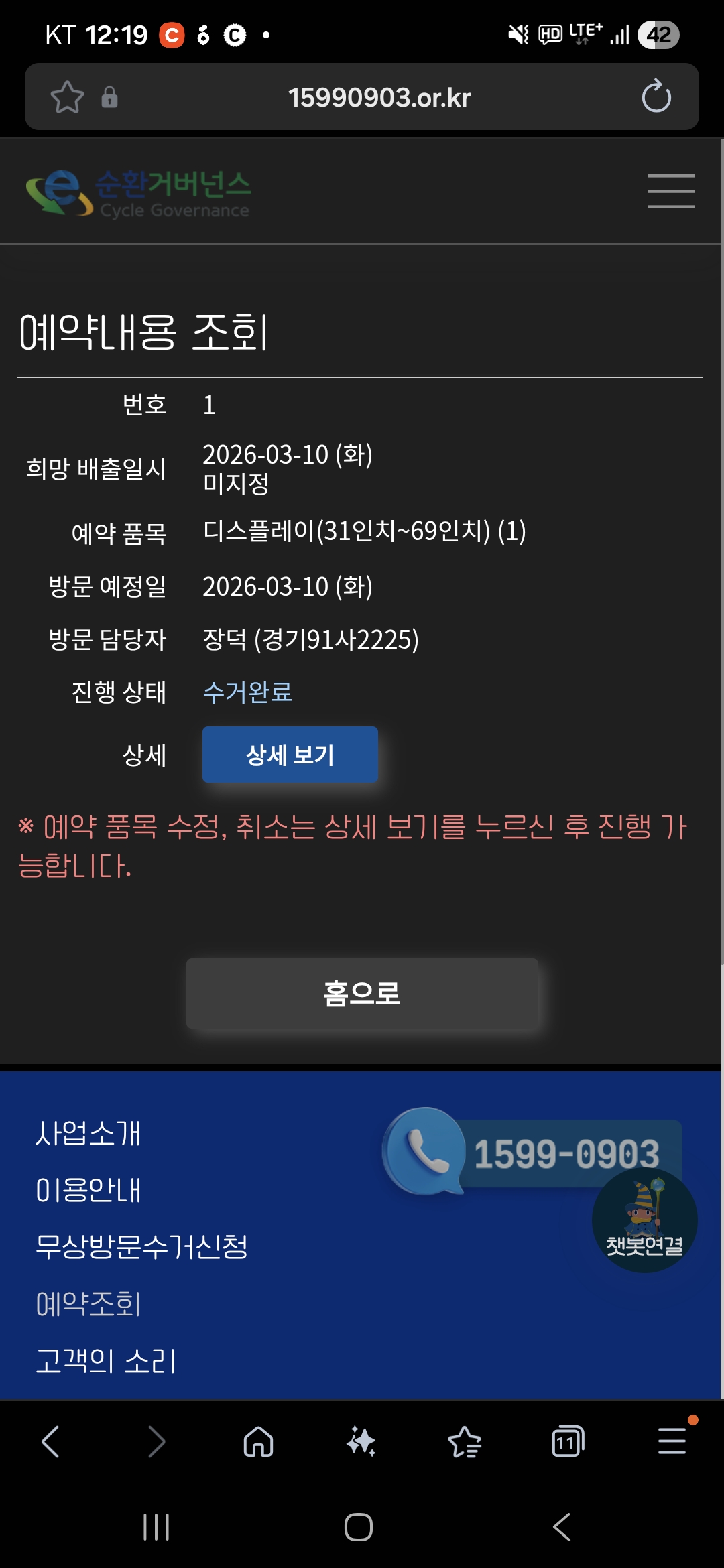 고장난 티비 수거 완료!