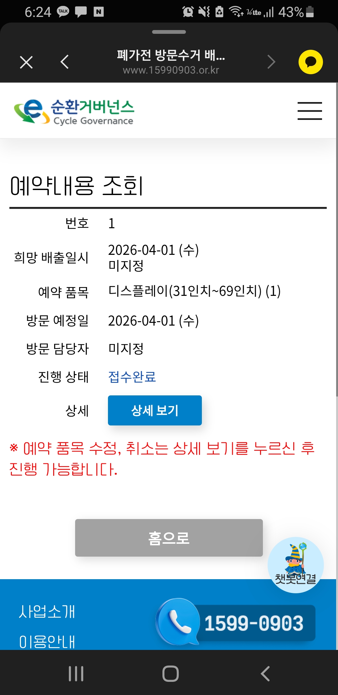 폐가전제품 무상수거 신청했습니다 ~
