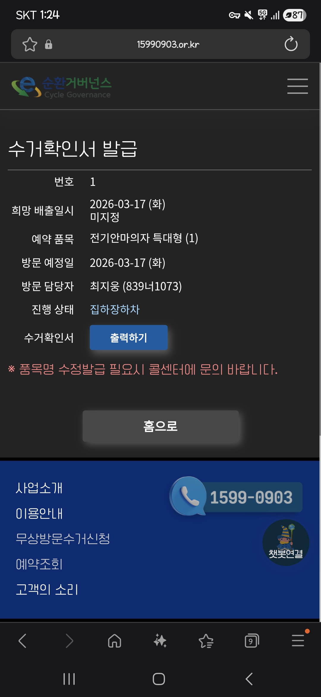 안마의자 분해 후 폐가전무상수거 했습니다?