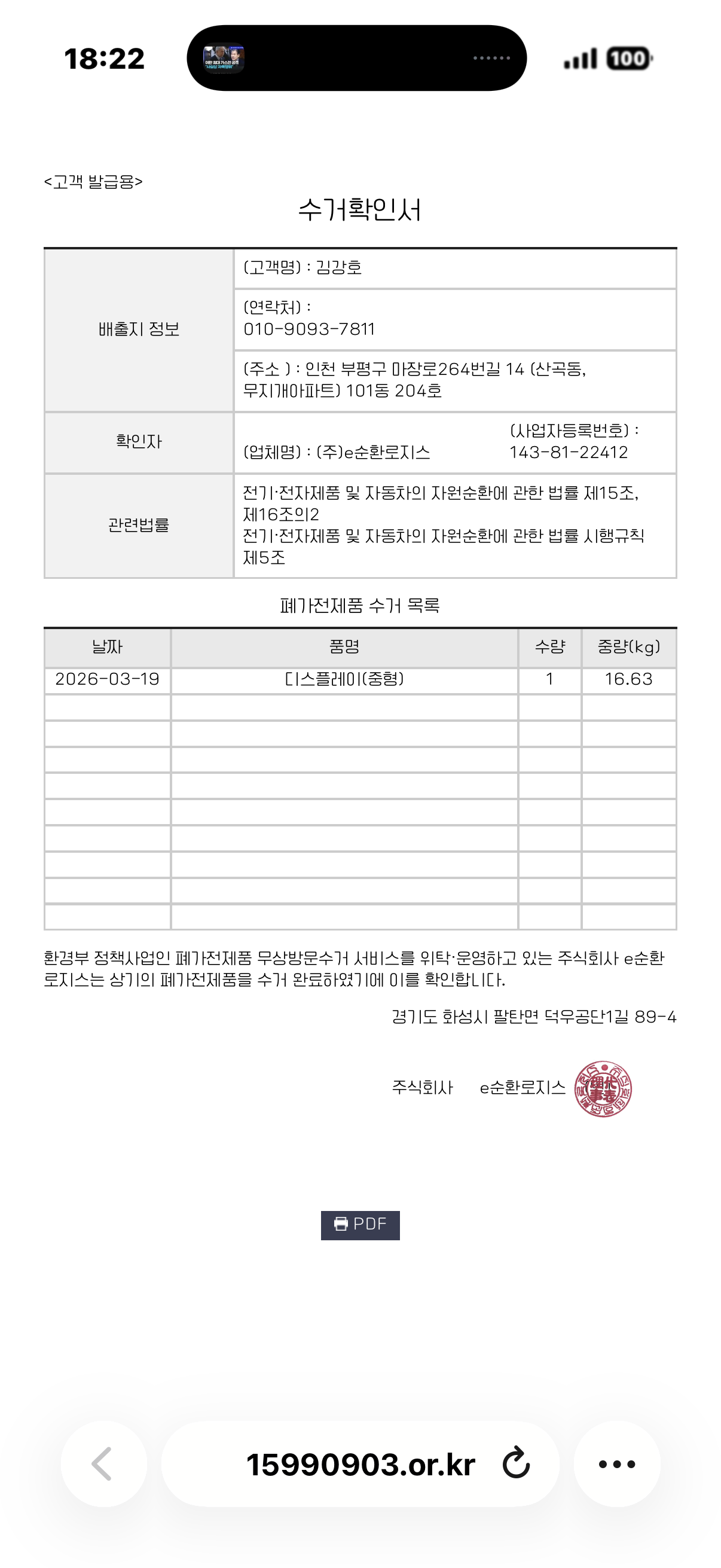 2010년형 LG PDP TV 폐가전 수거배출