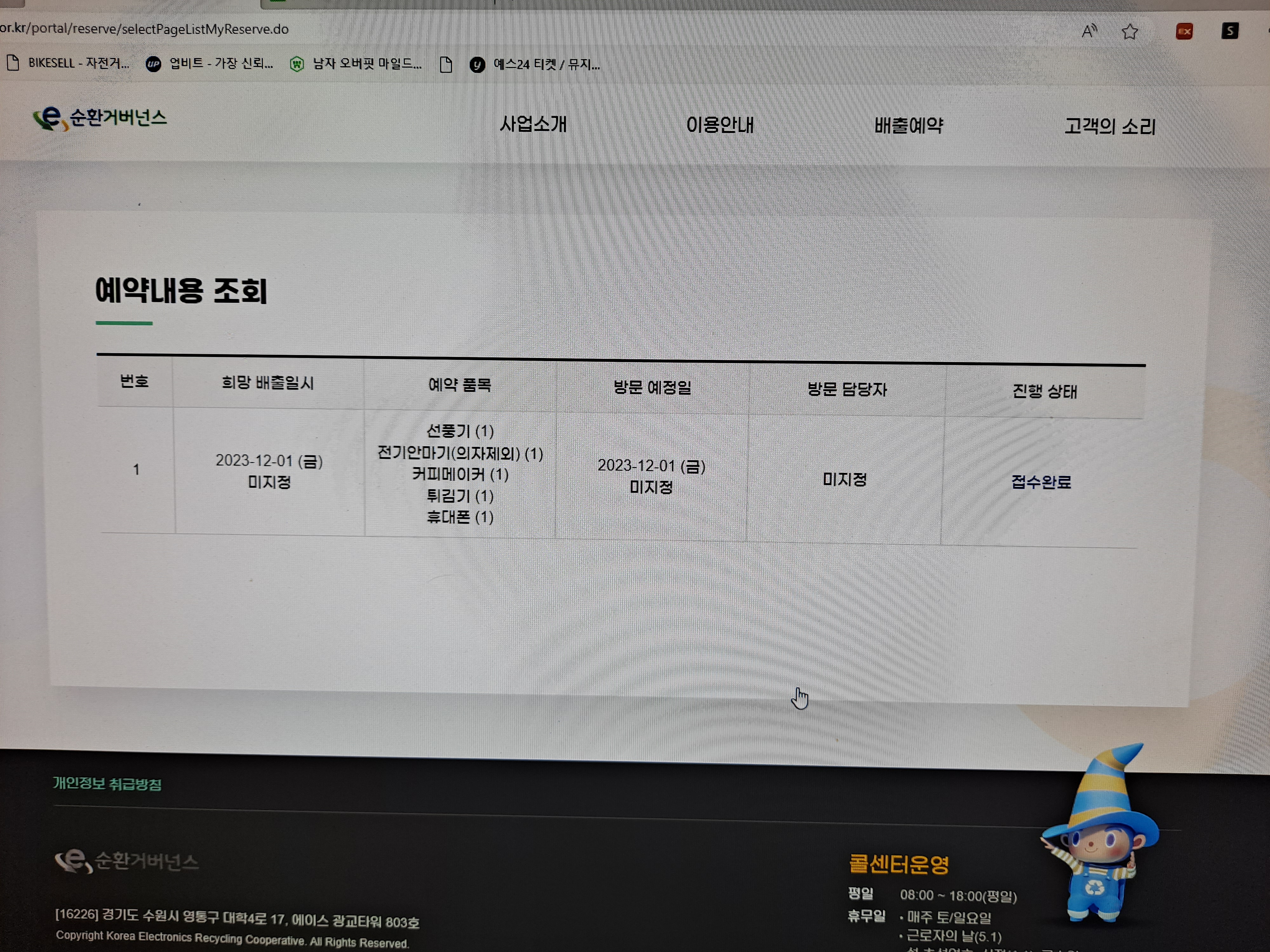 폐가전 수거 예약했어요~