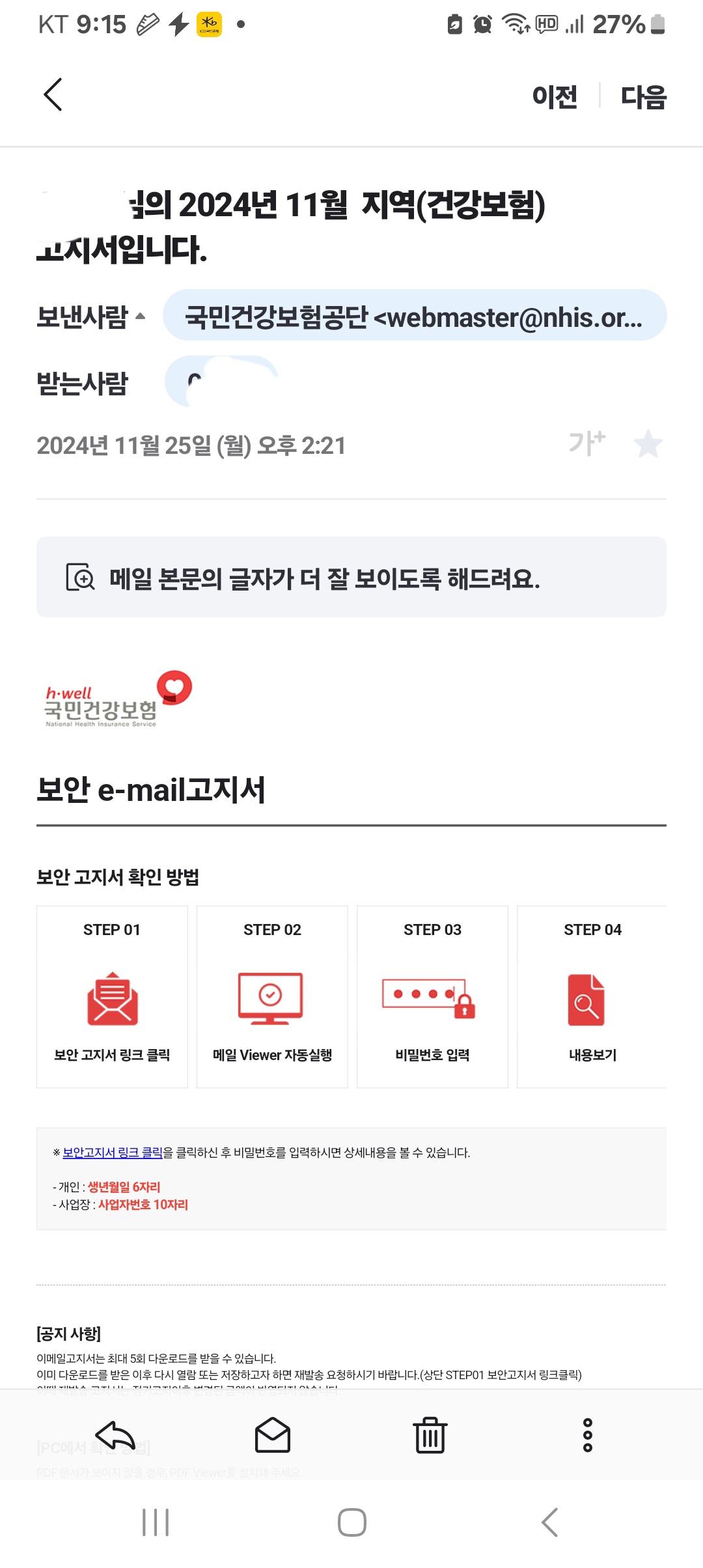 이메일로 고지서 받기