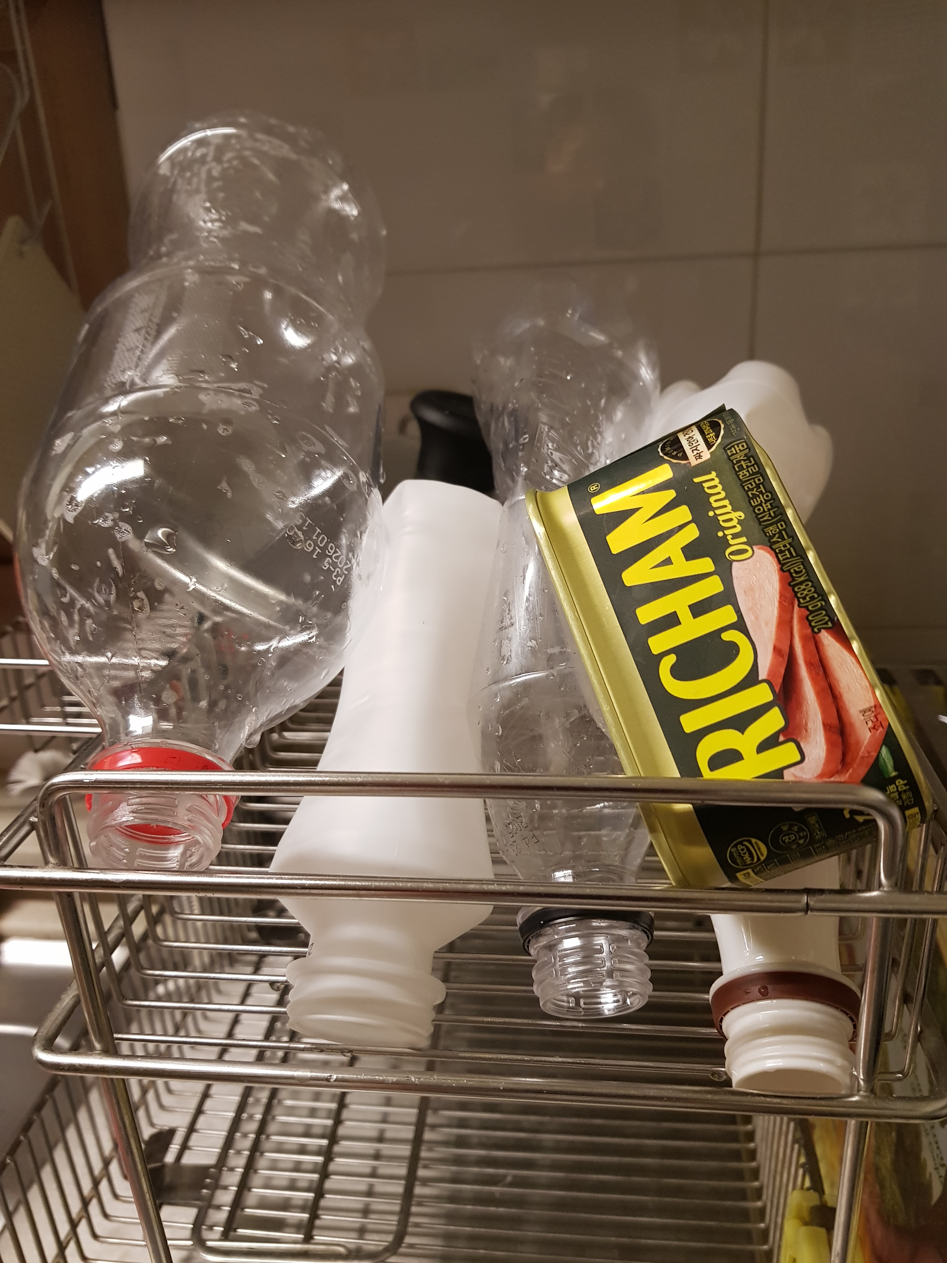 플라스틱 깨끗이 씻고 라벨을 제거햤어요~