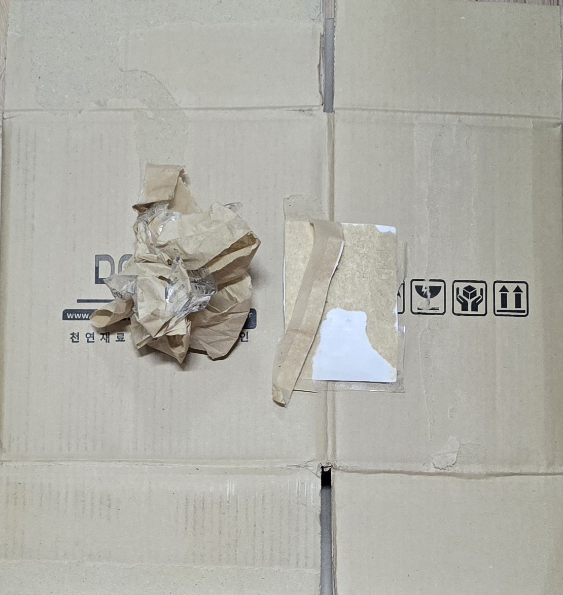 택배 박스 송장과 테이프 제거 후 분리배출
