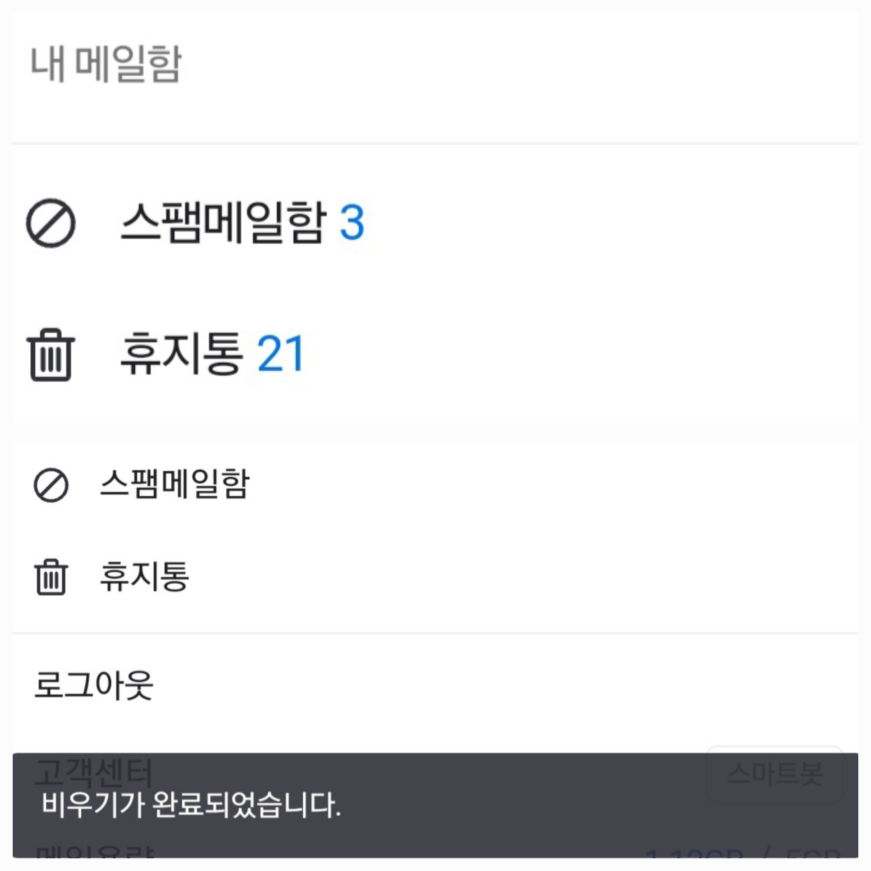 메일함 비우기