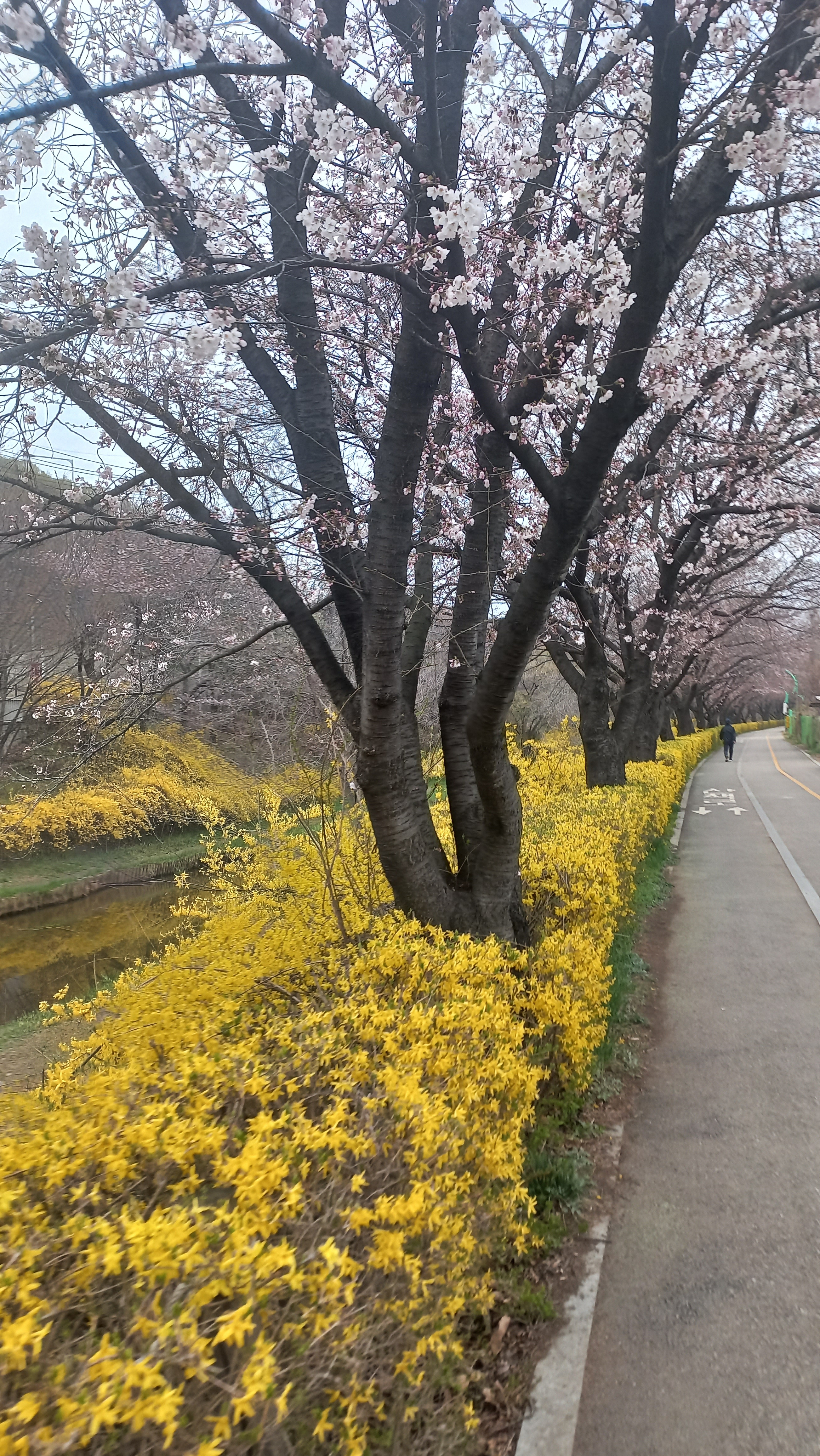 개나리와 벚꽃이 한껏많이피었다