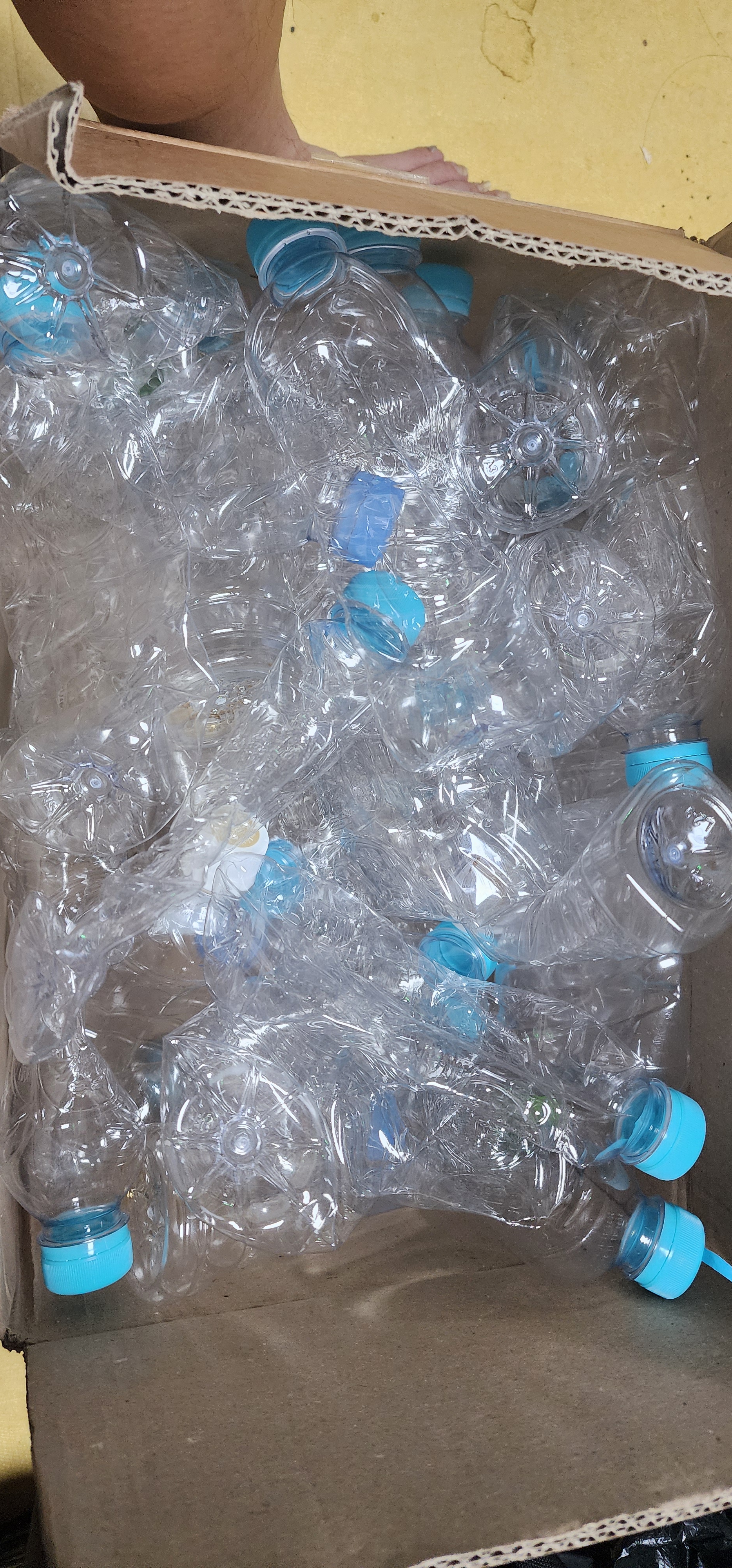 투명페트병 모여 잇던거 정리해셔 박스에 넣기 ~