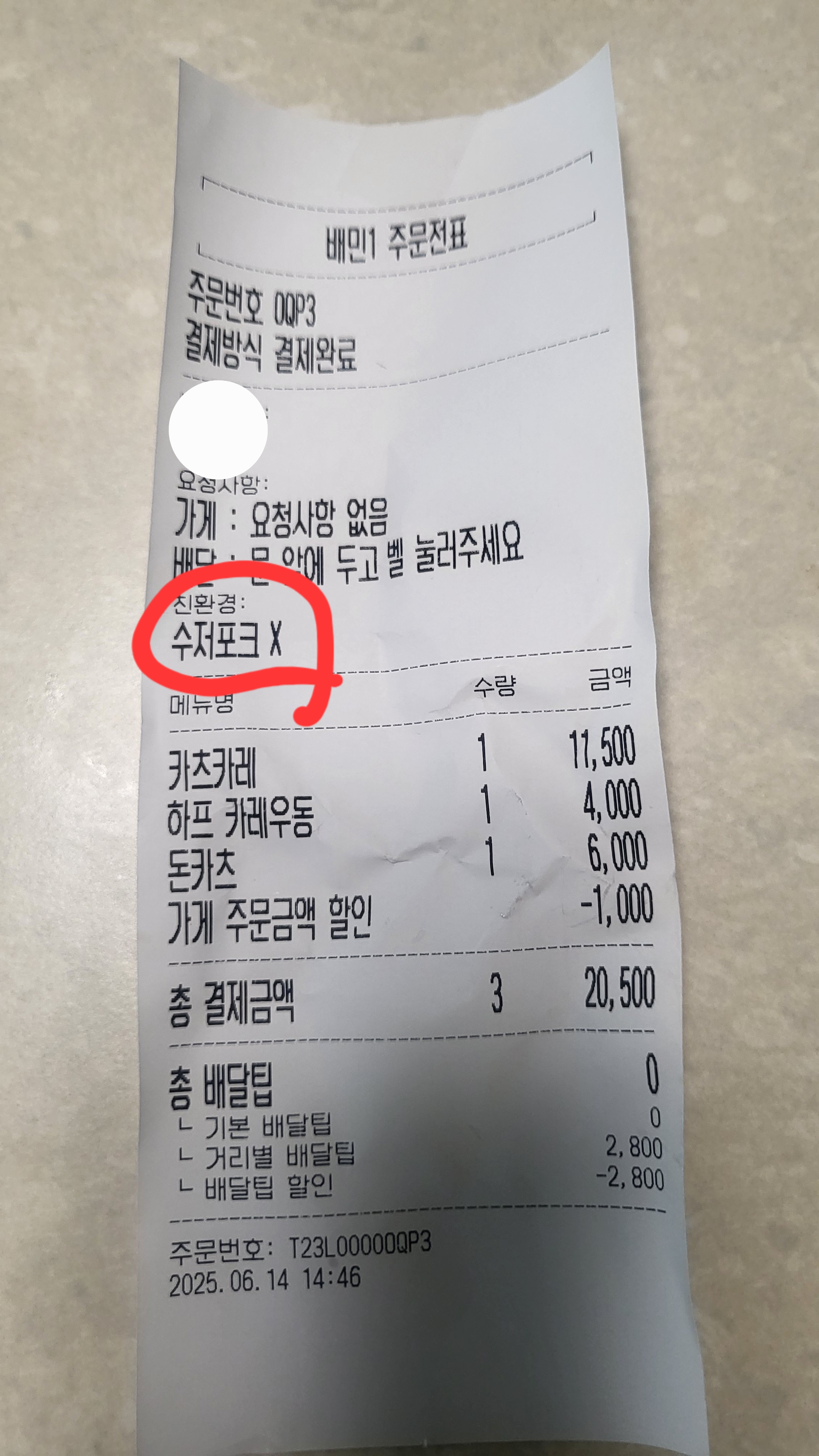 배달 수저 포크 안받기