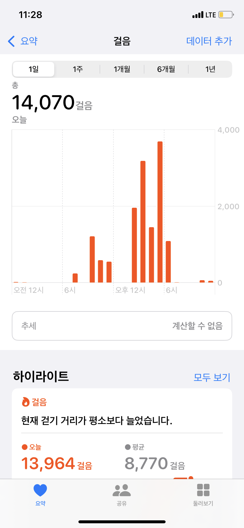 평소보다 많이 걸었어요