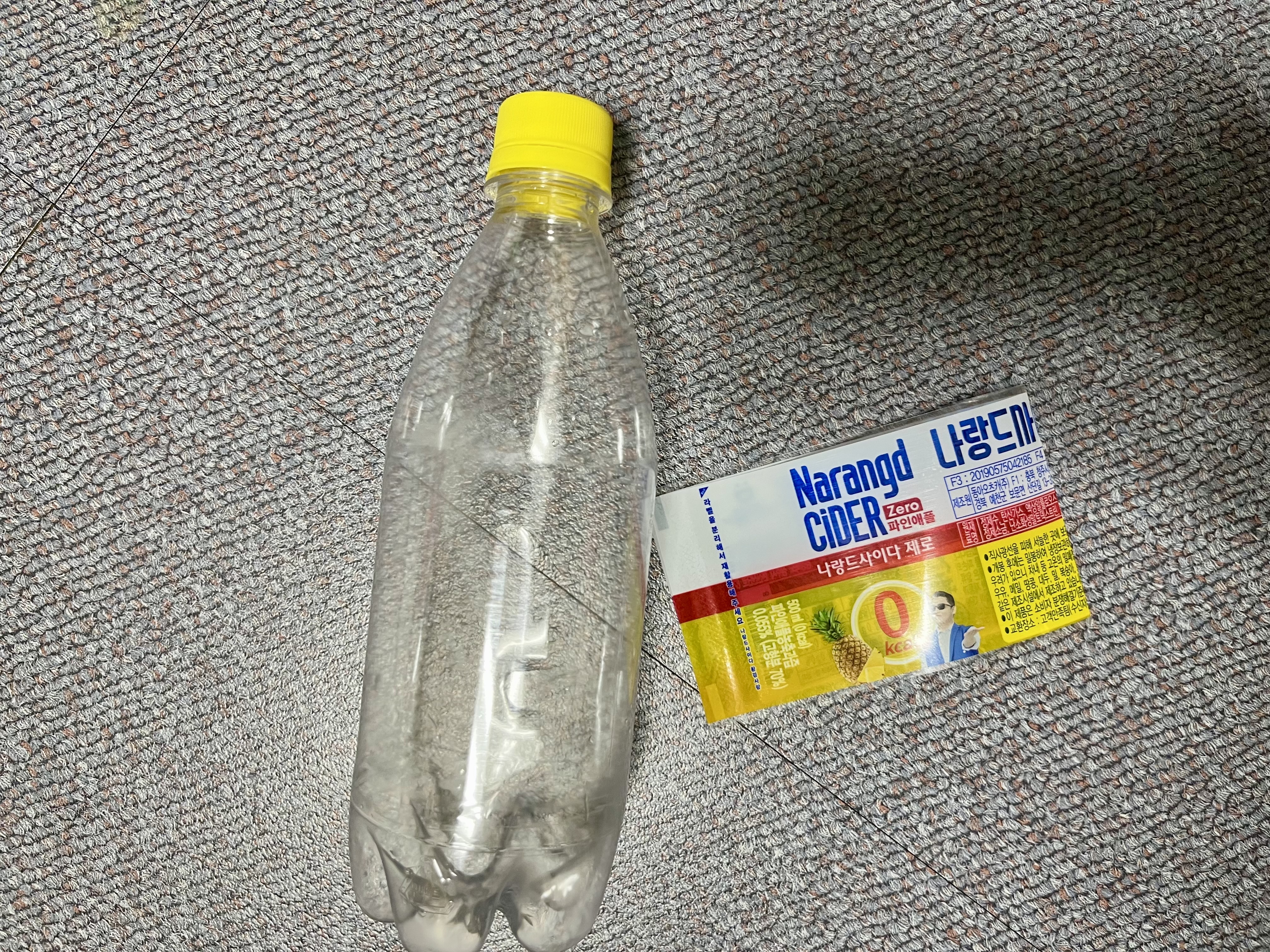 페트병에 남은 내용물을 비우고 물로 헹궈낸 후 라벨은 완전히 제거했어요. 페트병은 찌그러뜨려 부피를 줄이고 투명한 페트병끼리 모아서 배출했어요.