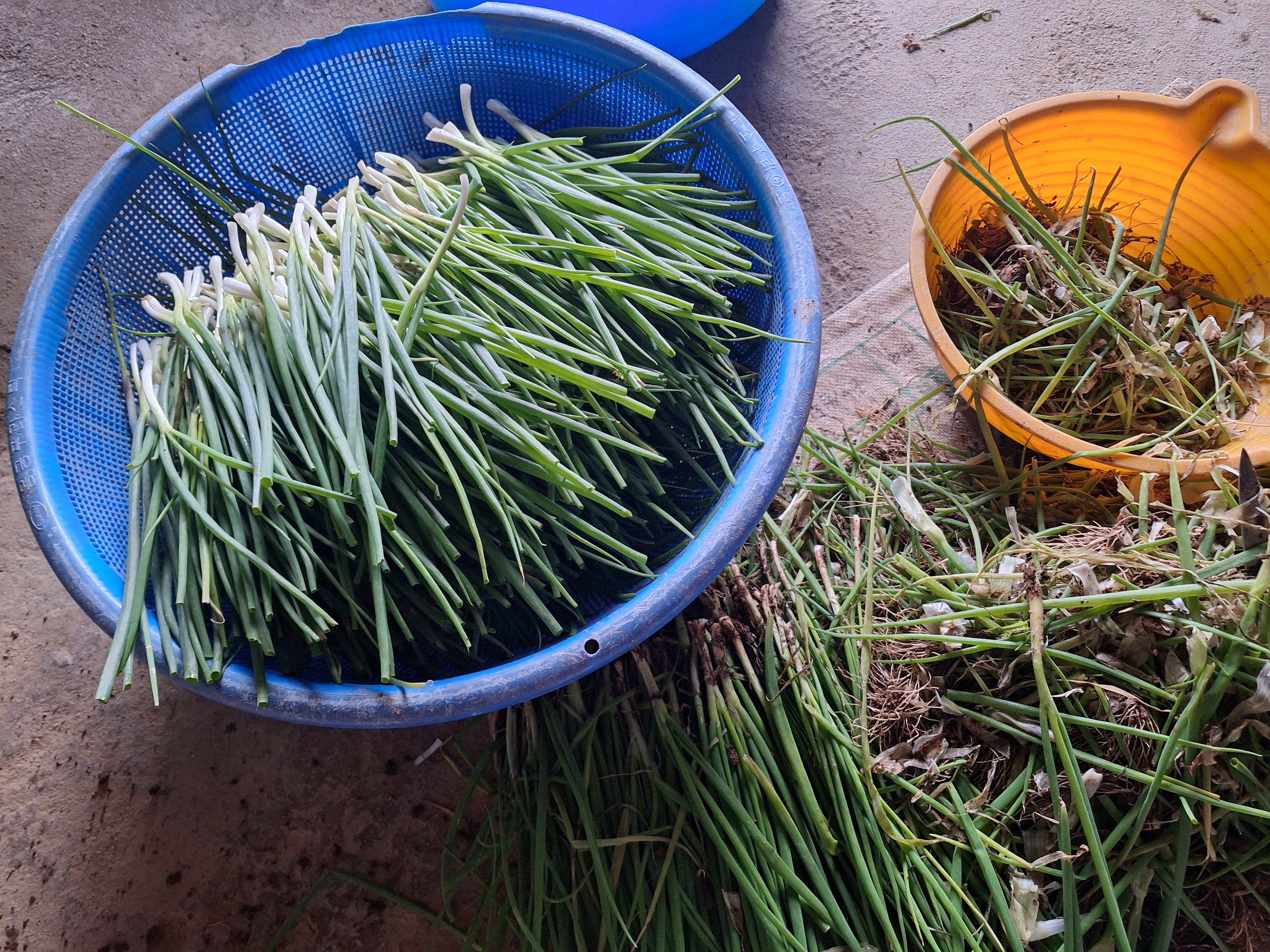 쪽파까고…  노인 두분이 하기엔 너무 어렵다