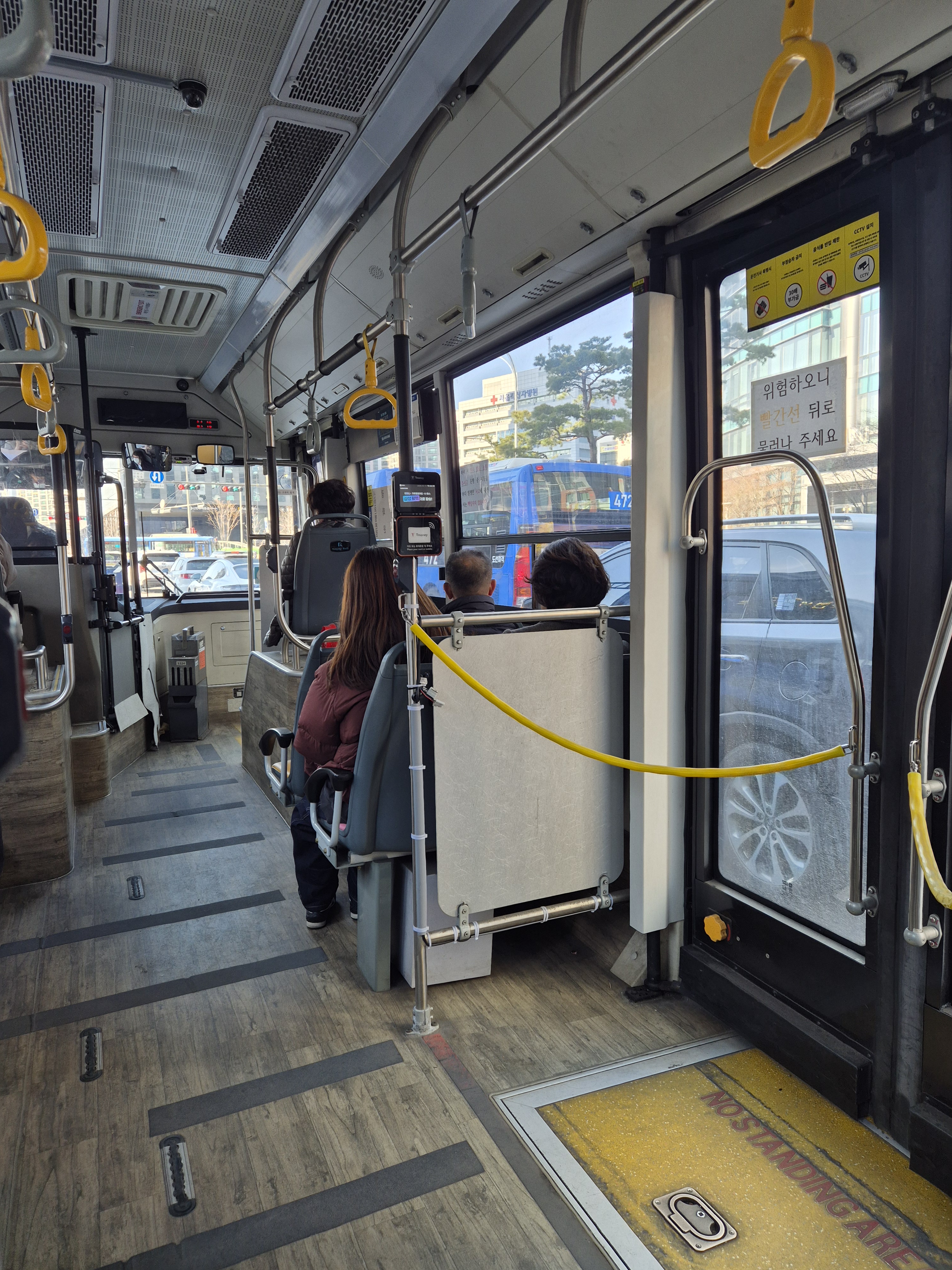 버스타고 제 시간에 맞춰 이동하는 중입니다.