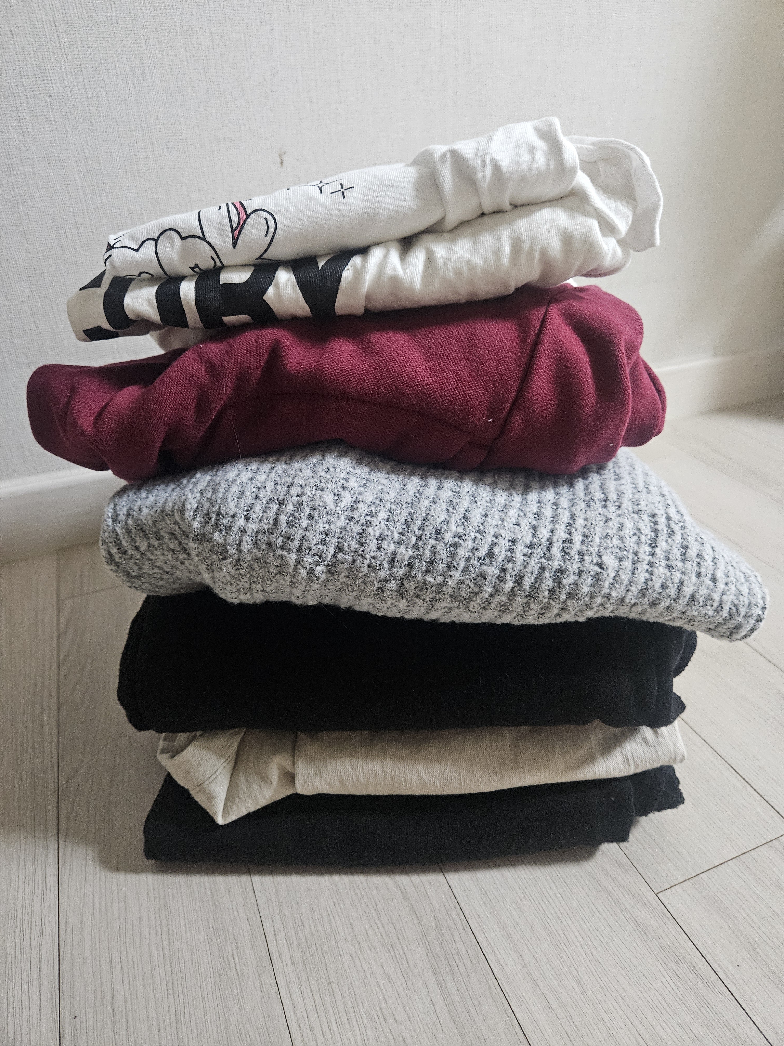원래 옷을 망가지기 전까지 입고 어릴적 옷도 맞으면 입고 다니는데 요 7개는 너무 작아서 한번도 못입거나 손이 안가 안입기 시작한 옷들이에요.