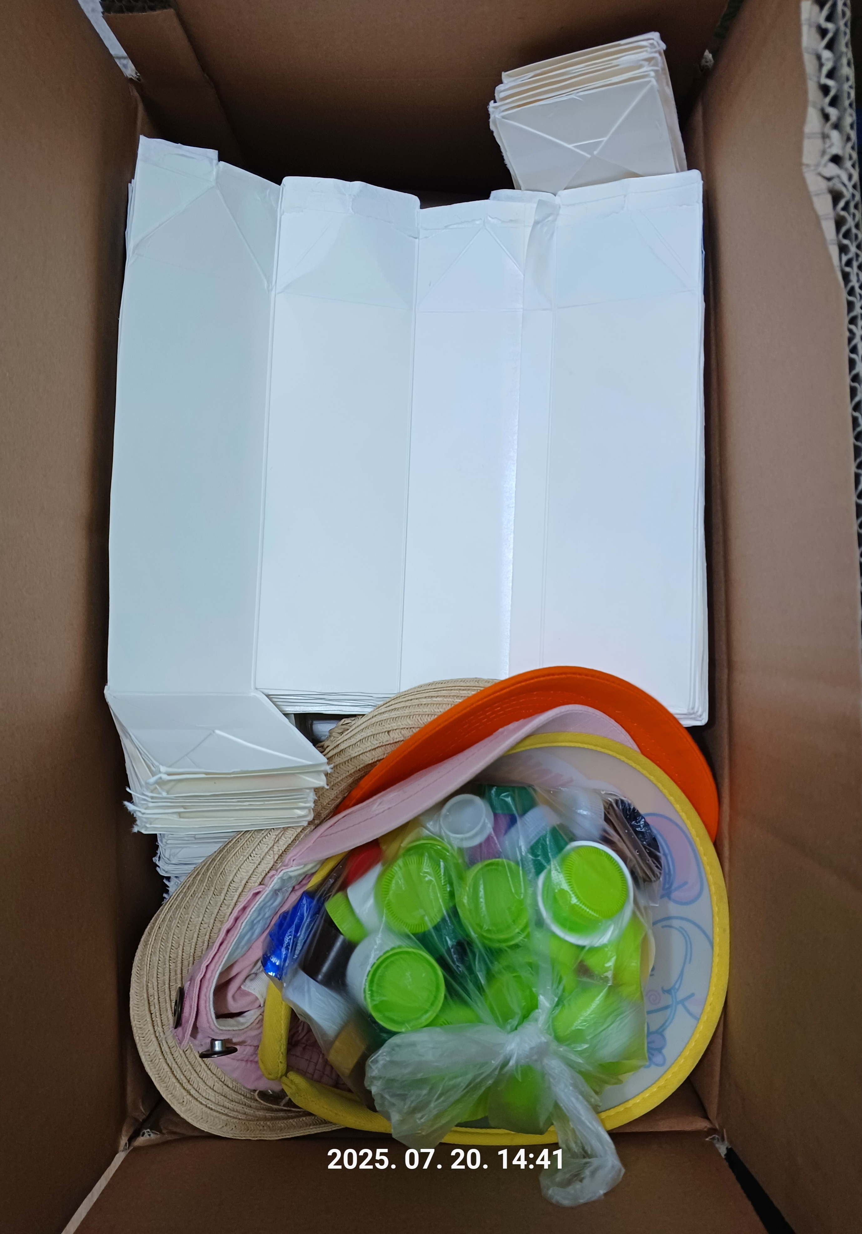 헌옷이랑 모자 56개, 종이팩 100개, 병뚜껑 100개 한 상자에 담아 수거 신청했습니다.