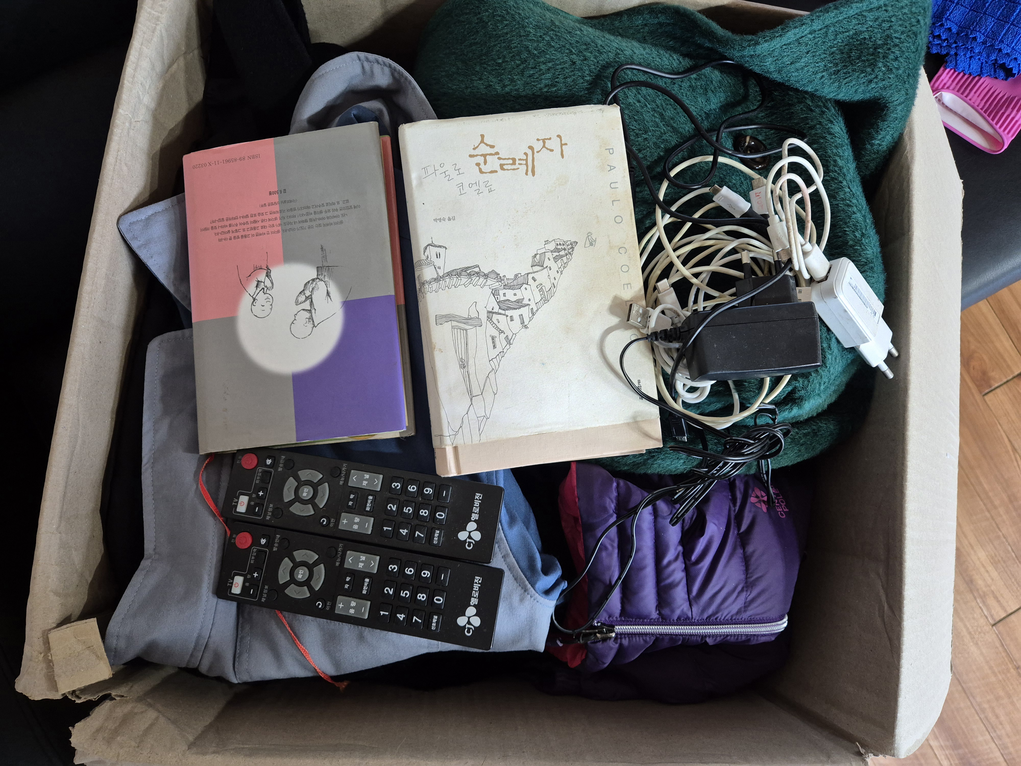 옷, 책, 충전기, 계산기