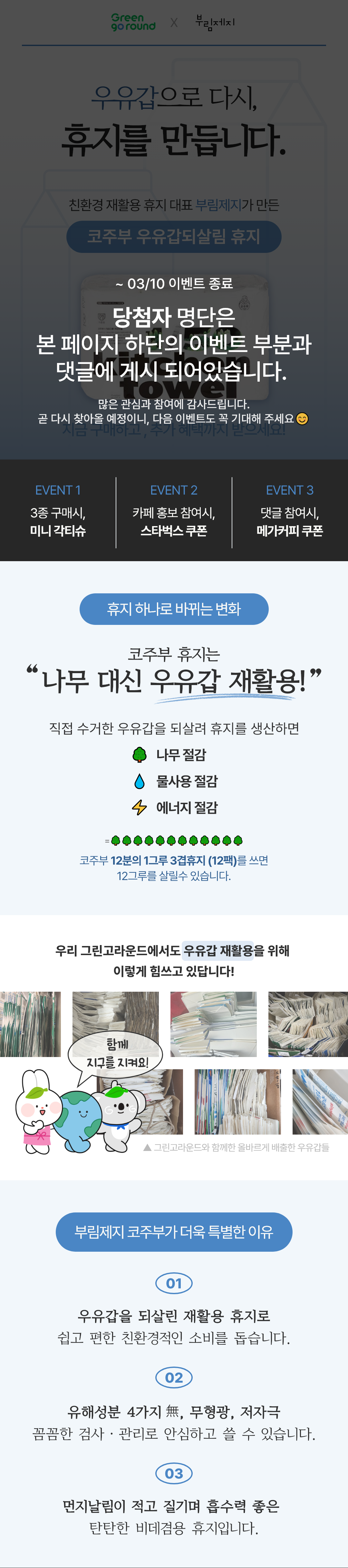 우유팩을.재활용한 휴지. 응원합니다.